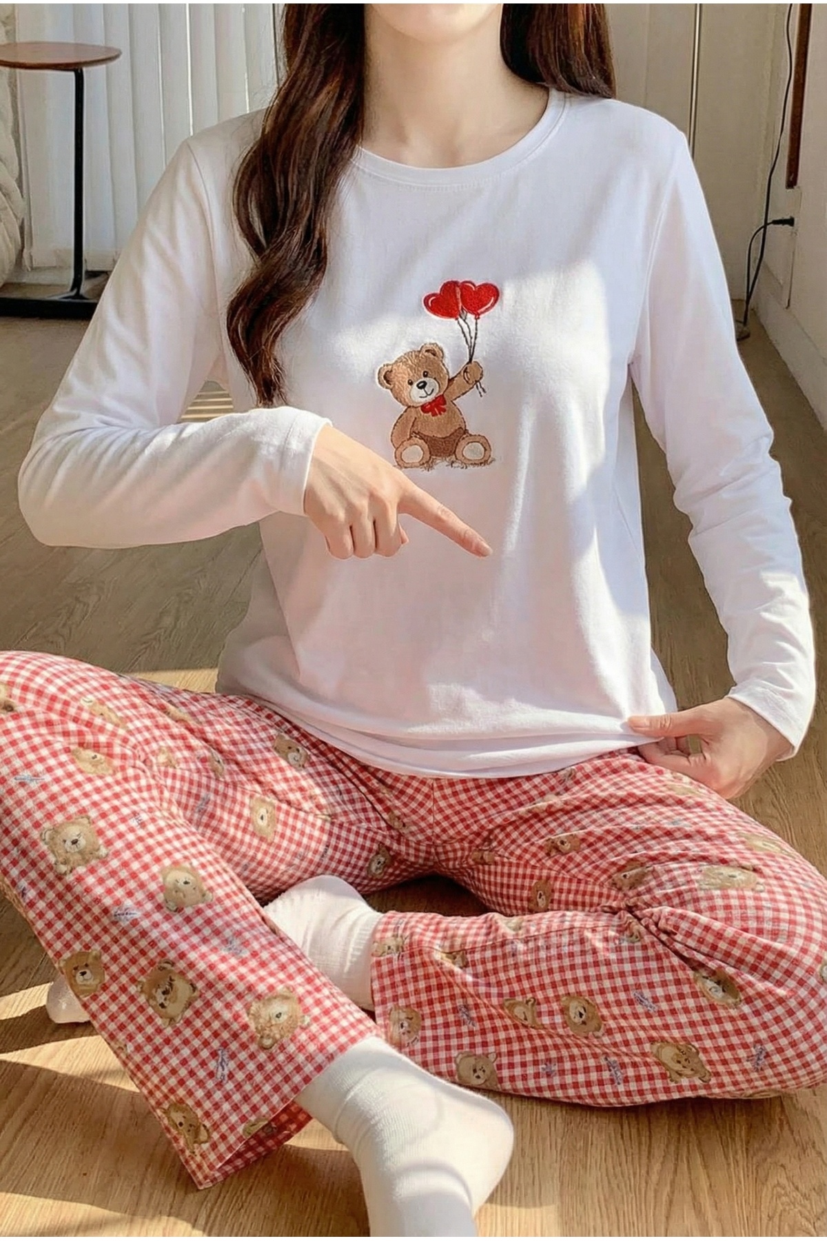 ميزات طقم بيجامة منقوشة على شكل دب من FEMELLE