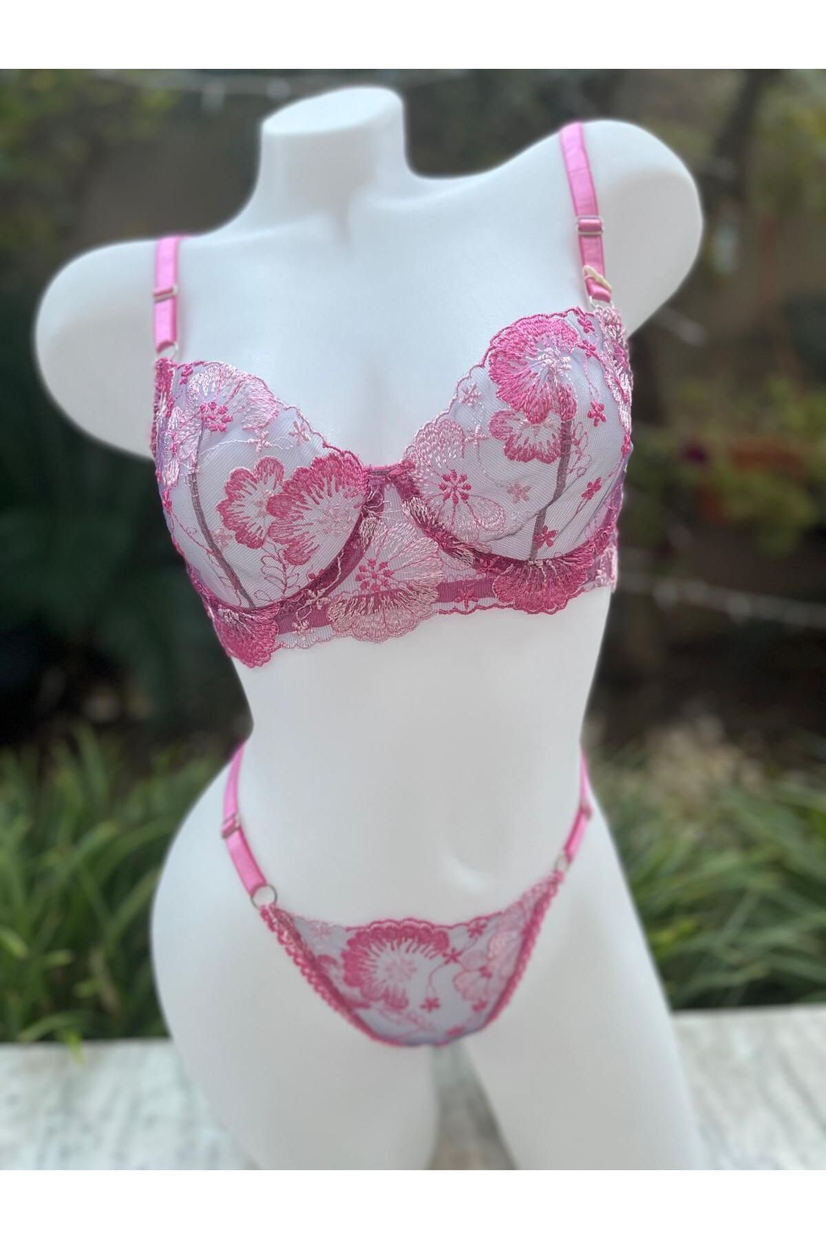 FEMMEA طقم ملابس داخلية شفافة بنمط وردي