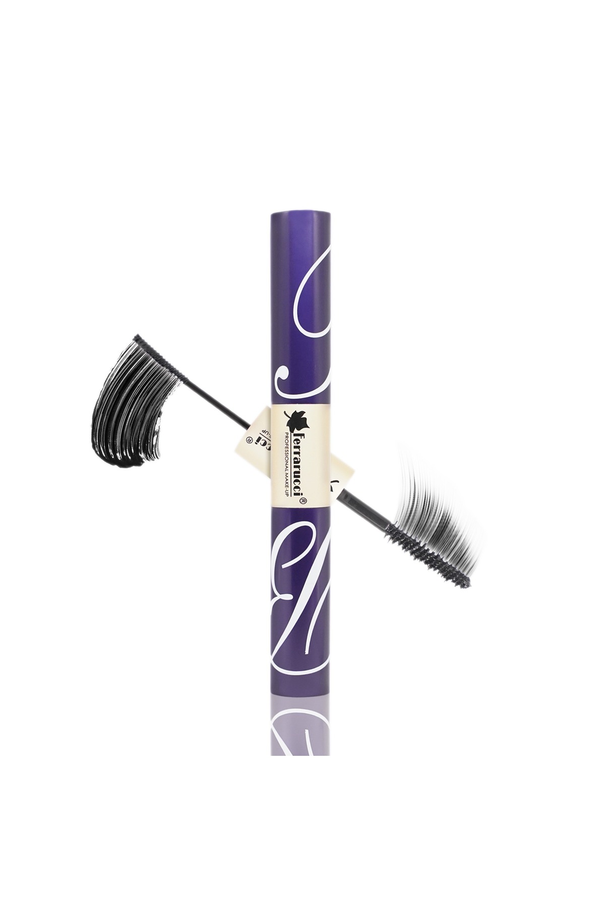 ابدئي برموش نظيفة وجافة؛ استخدمي أداة تجعيد الرموش للحصول على تجعيد إضافي إذا رغبتِ في ذلك. استخدمي الطرف السميك للفرشاة لتغطية الرموش من الجذور إلى الأطراف للحصول على حجم، ثم استخدمي العصا الرفيعة لتحديد الرموش وإطالة طولها بدقة.