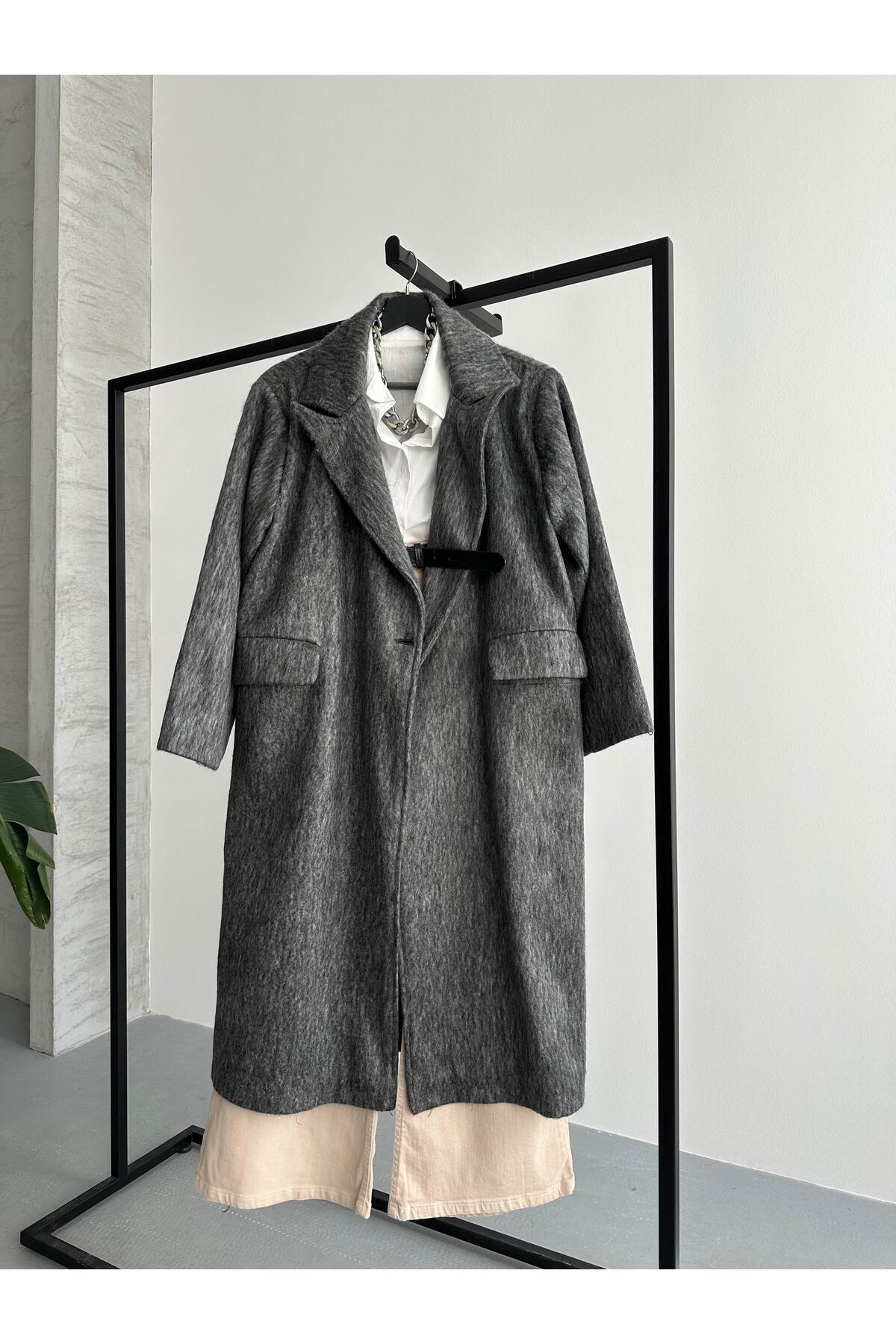 ميزات معطف صوف أنثراسيت كبير الحجم بزر واحد من FERZOLAİO