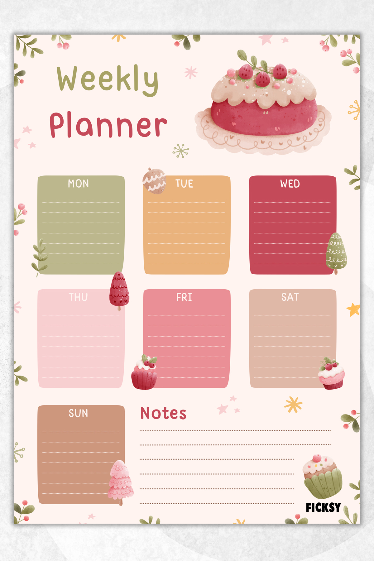 Ficksy مخطط أسبوعي - مقاس A4 - 30 ورقة - مخطط أسبوعي