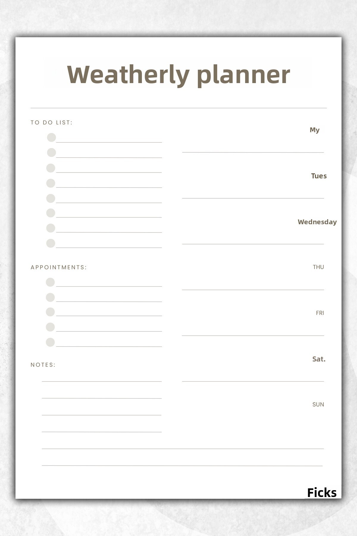 Ficksy مخطط أسبوعي - مقاس A4 - 30 ورقة - مخطط أسبوعي