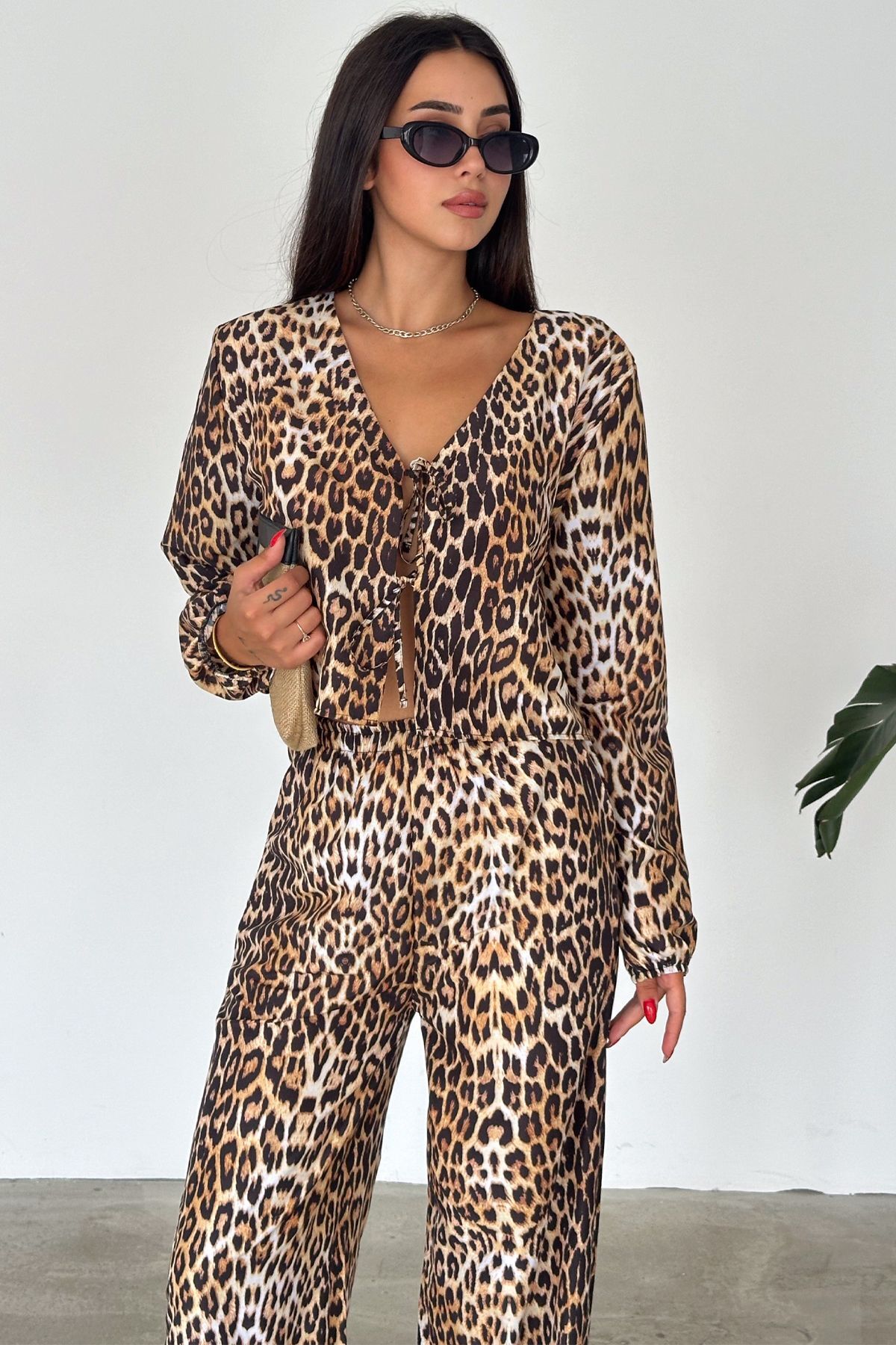 ميزات طقم قميص بوبلين بطبعة جلد الفهد من fiolin