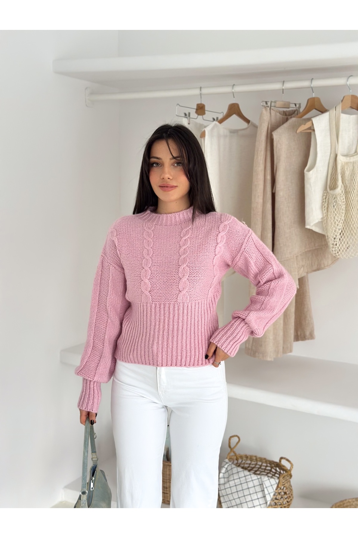 ميزات سترة تريكو ذات ياقة دائرية بنمط محبوك ناعم الملمس من fiolin