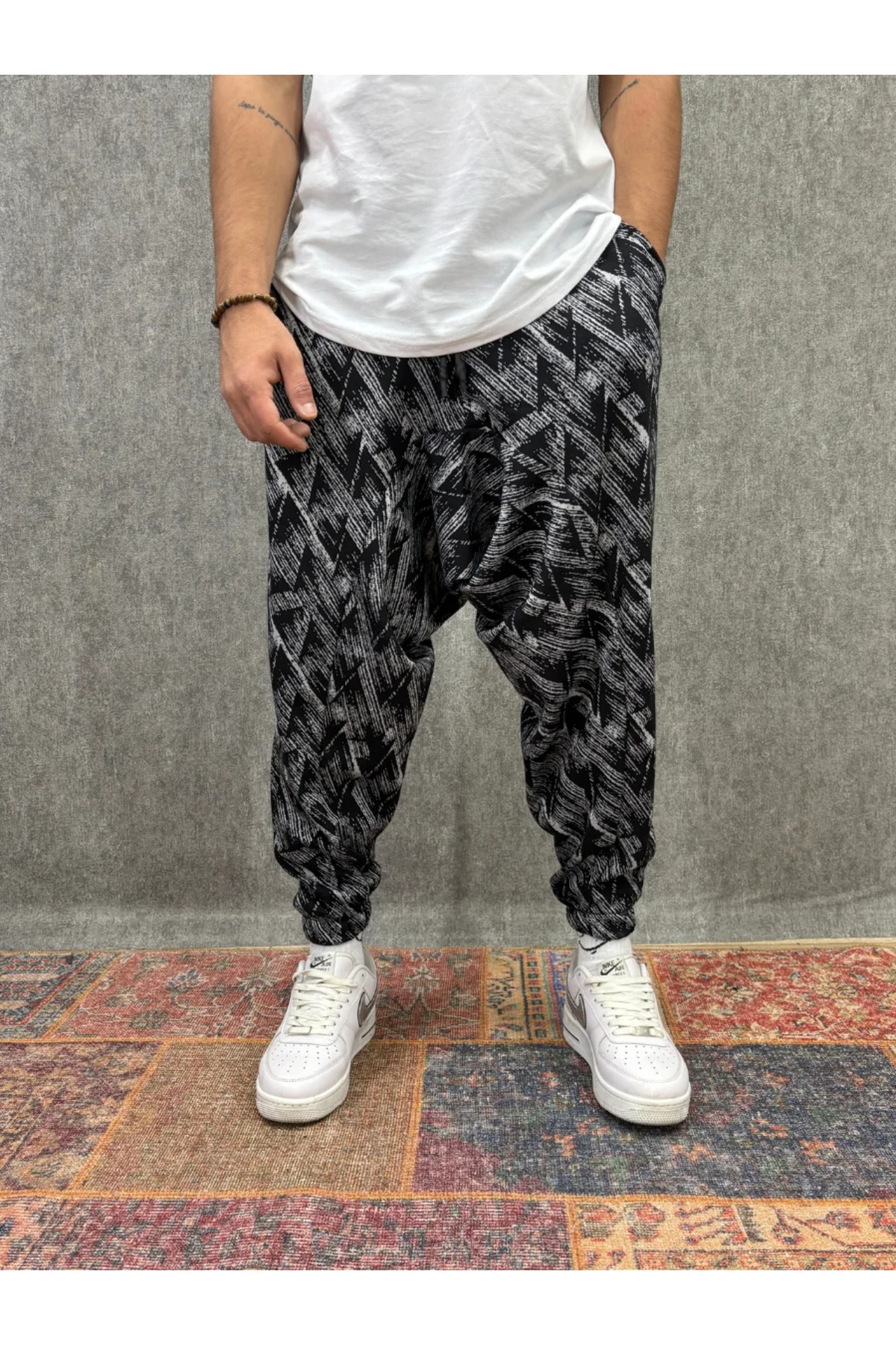 ميزات بنطلون نصف شالوار مطوي ومزين بنمط مع خصر مطاطي من FıttingRoom