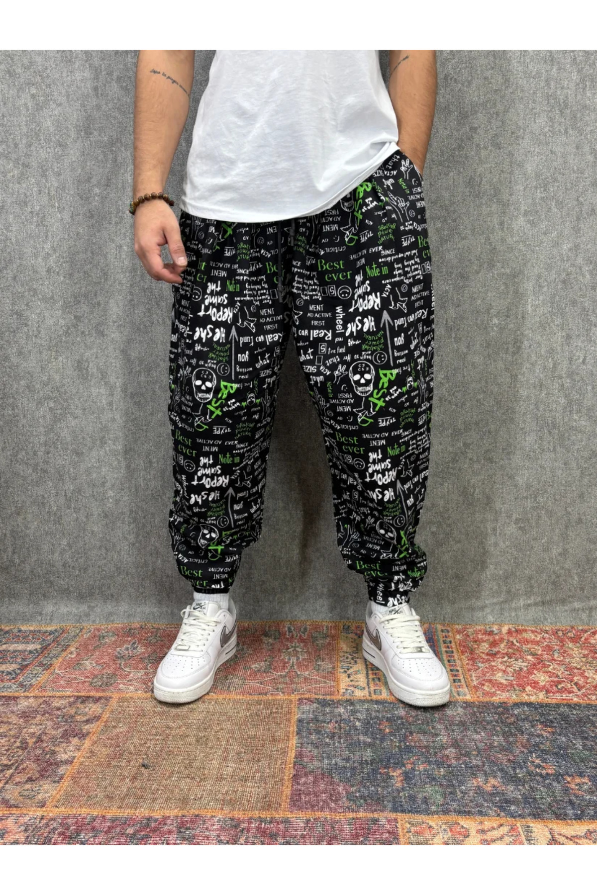 ميزات بنطلون نصف شالوار مطوي ومزين بنمط مع خصر مطاطي من FıttingRoom