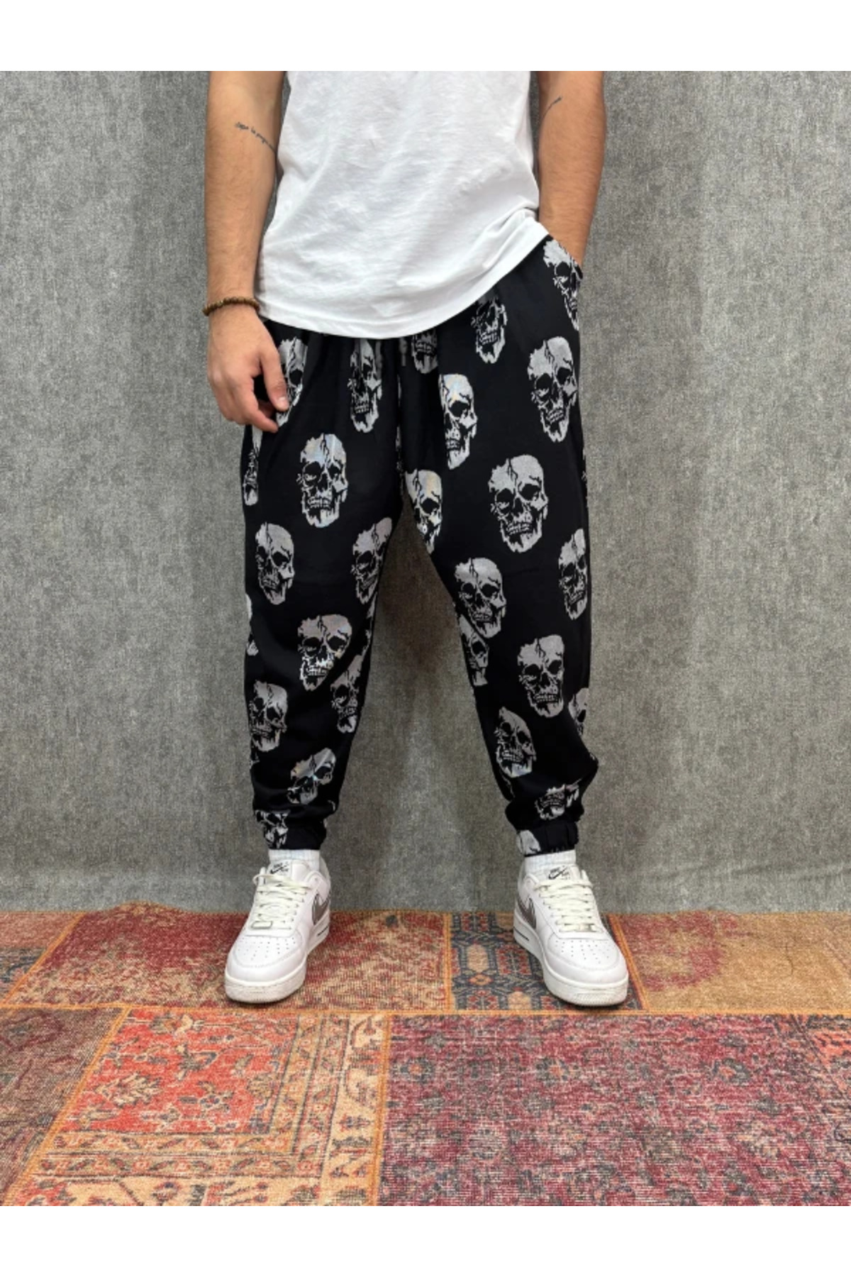 ميزات بنطلون شالوار مطوي ومزين بنمط مع خصر مطاطي من FıttingRoom