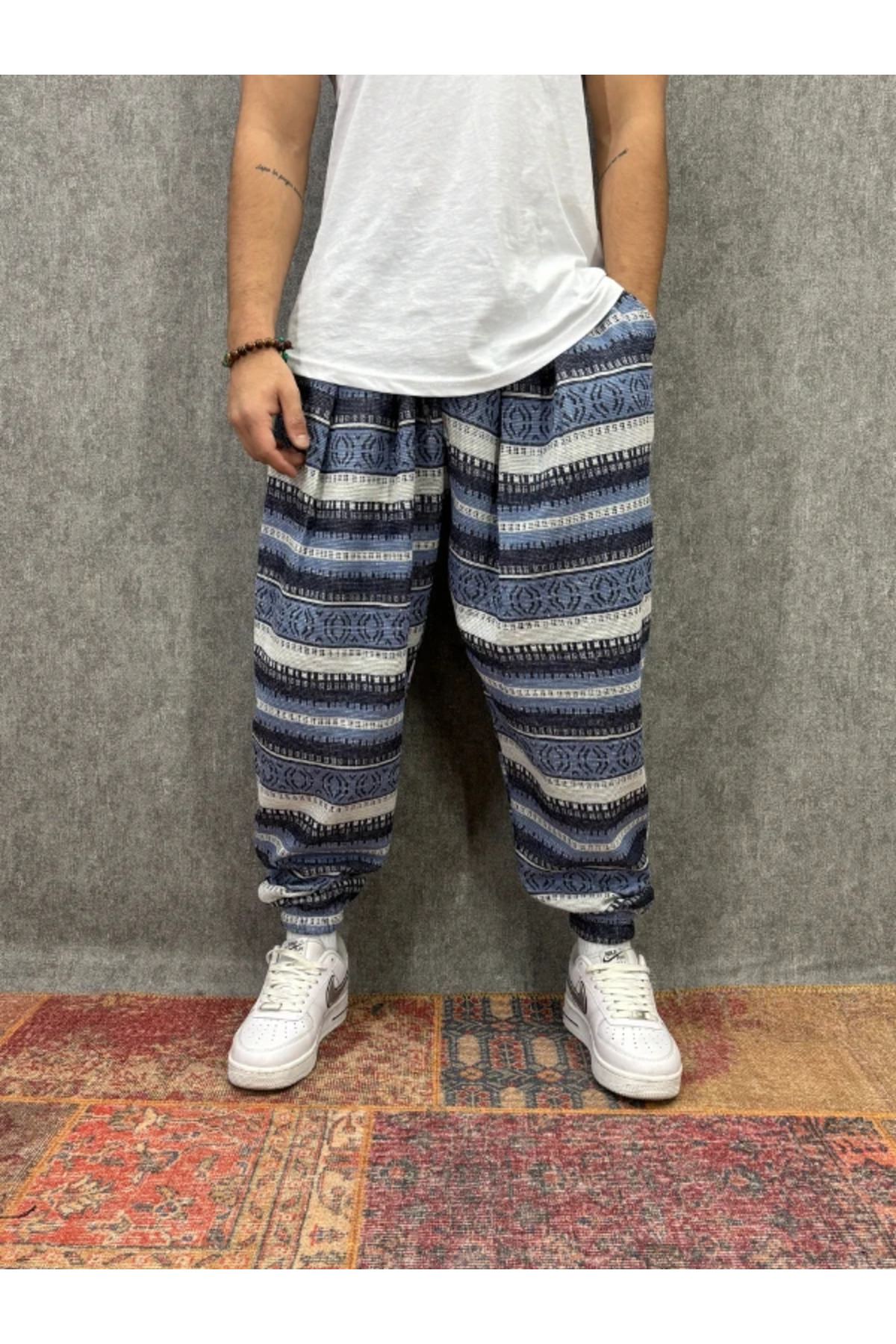 ميزات بنطلون شالوار مطوي ومزين بنمط مع خصر مطاطي من FıttingRoom