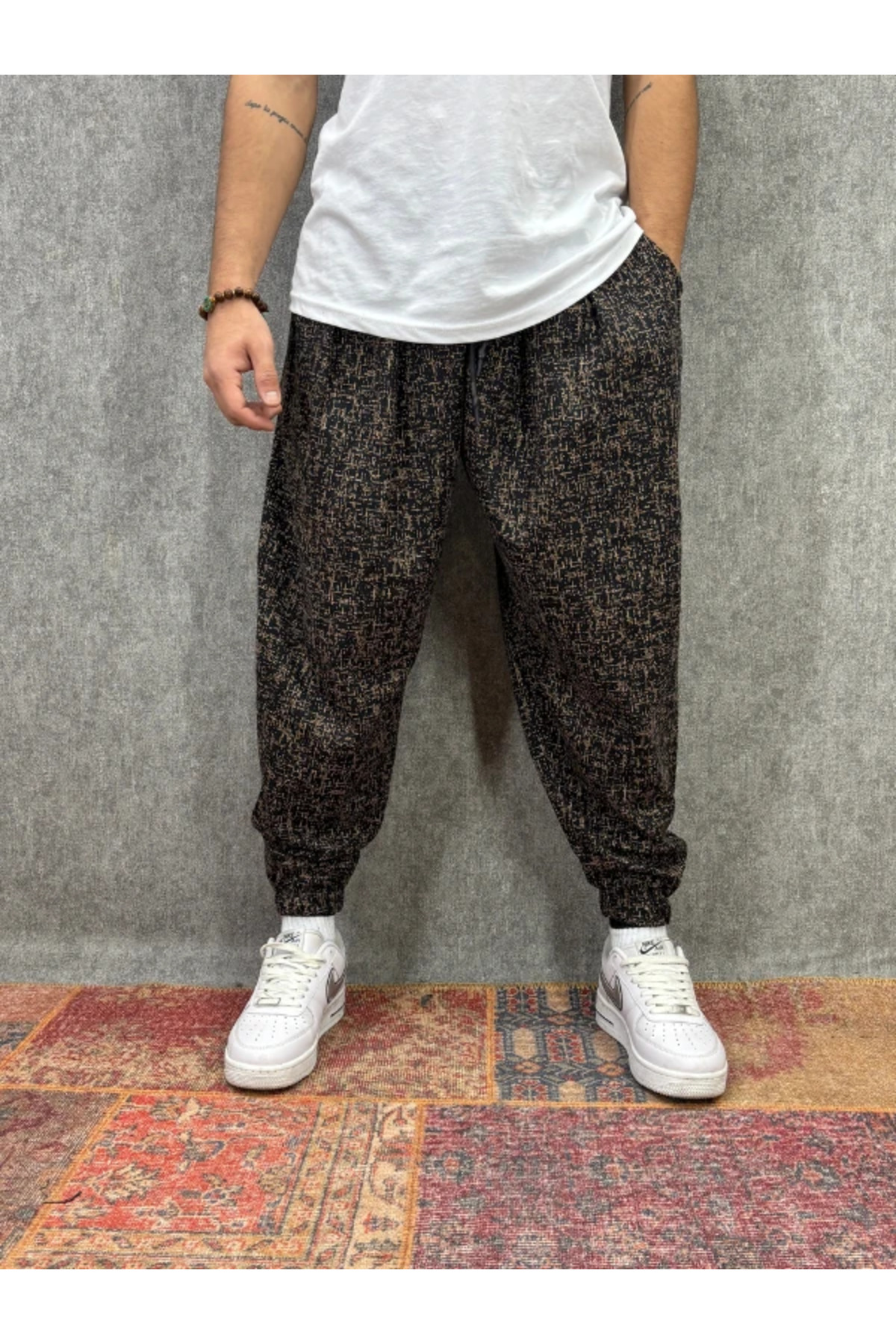 ميزات بنطلون شالوار مطوي ومزين بنمط مع خصر مطاطي من FıttingRoom