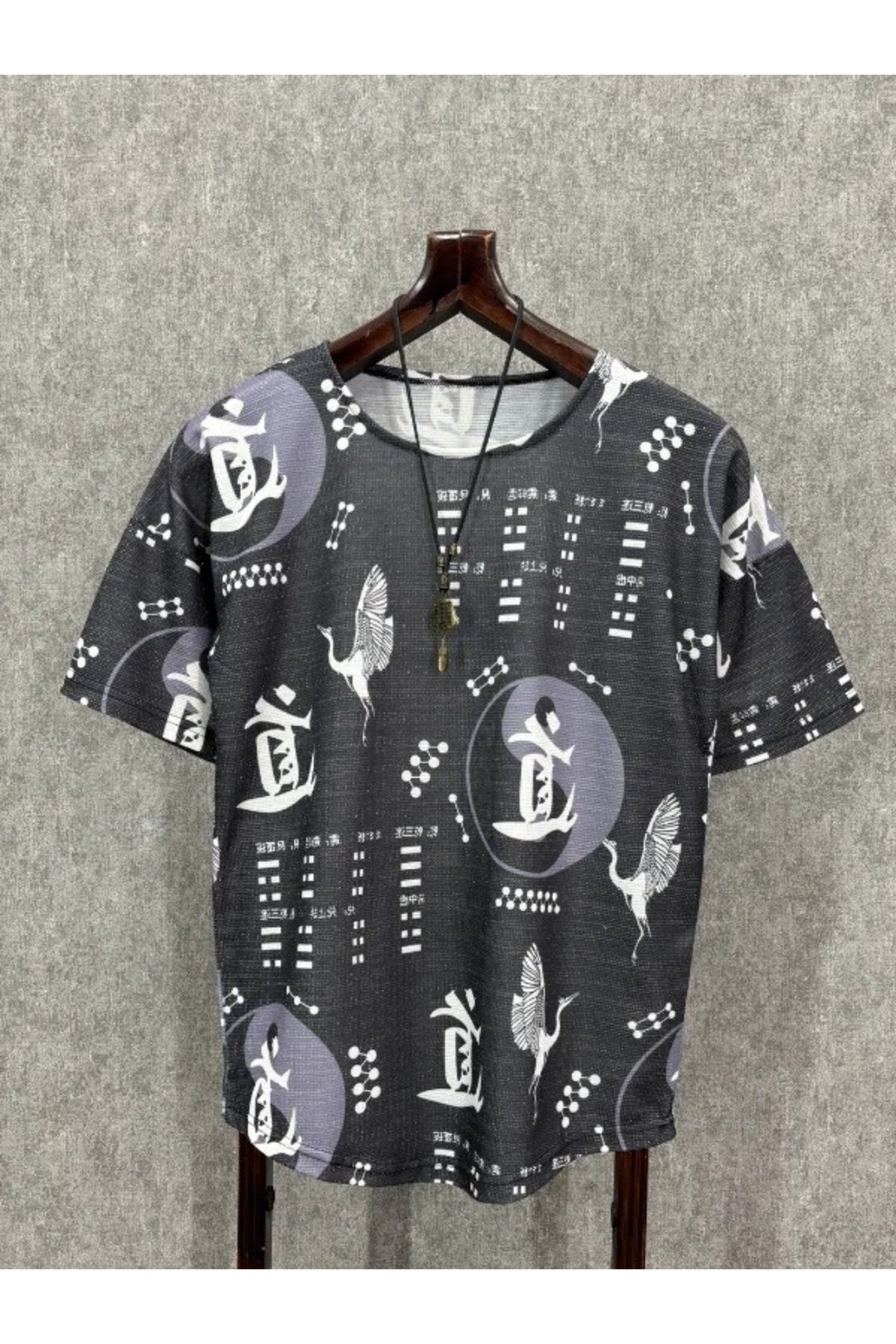ميزات تيشيرت بوهيمي منقوش كبير الحجم من FıttingRoom