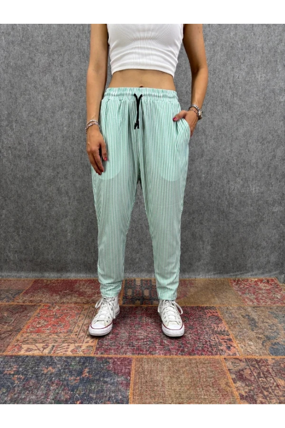 ميزات بنطلون مزخرف بخاصية المطاط من FıttingRoom