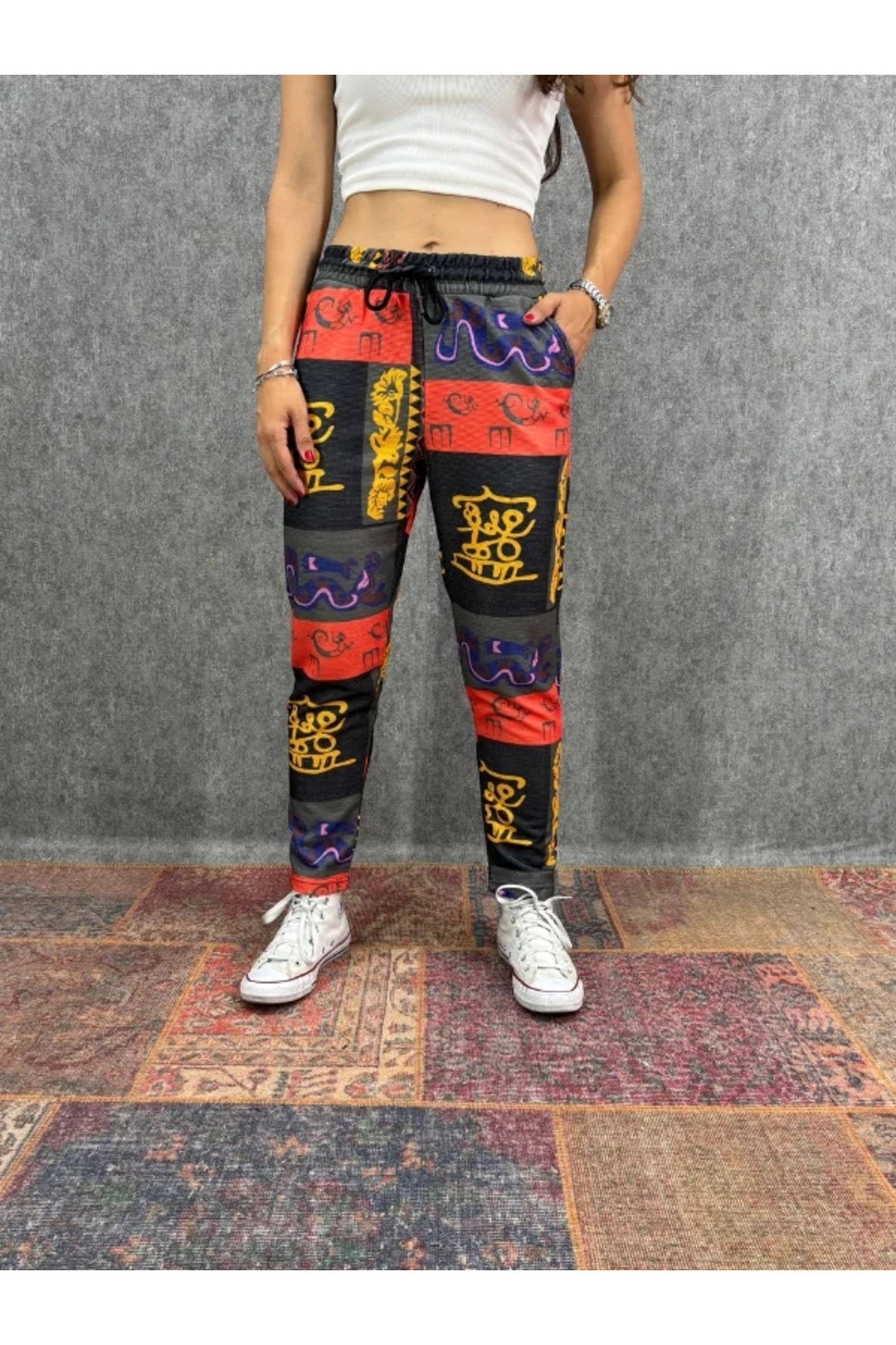 ميزات بنطلون مزخرف بخصر مطاطي أبيض من FıttingRoom