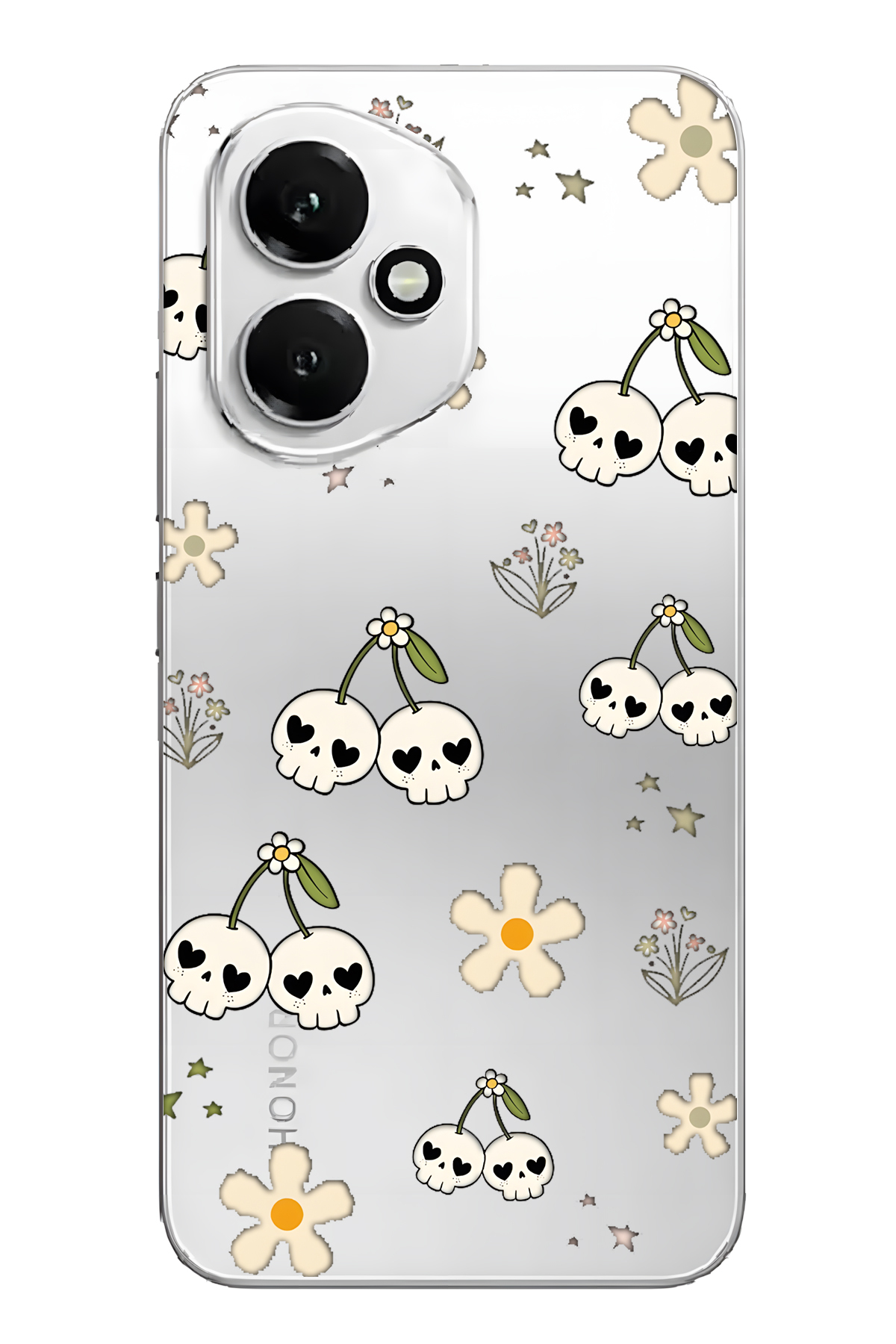 FLAMENKO غطاء هاتف شفاف بنمط جمجمة الكرز متوافق مع هونور 400