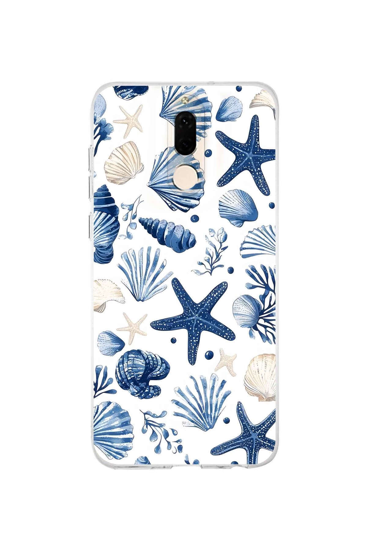 ميزات حافظة هاتف شفافة متوافقة مع هاتف Huawei Mate 10 Lite بنمط نجم البحر والأصداف من FLAMENKO