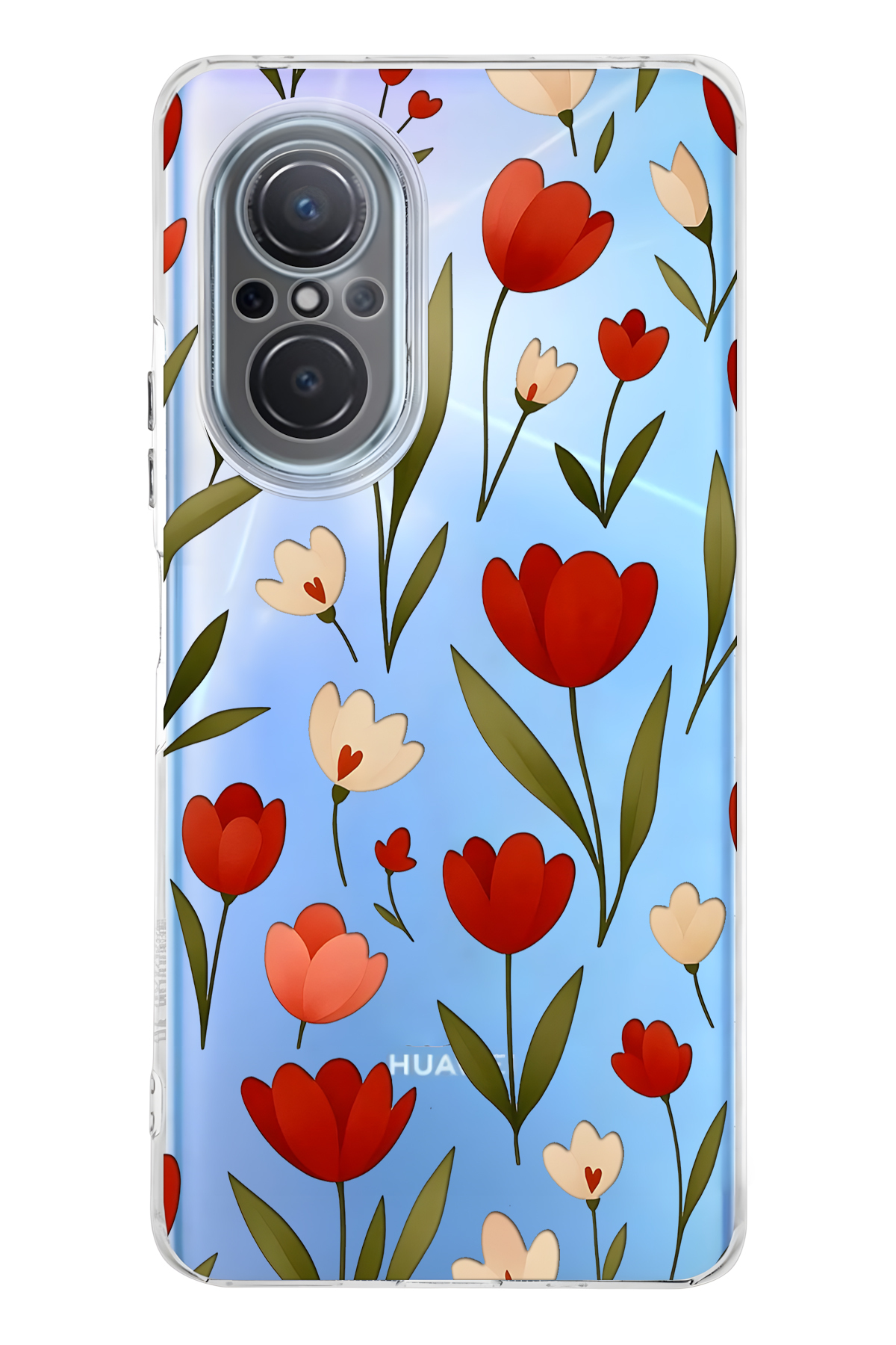 FLAMENKO حافظة هاتف شفافة بنمط زهرة التوليب الحمراء متوافقة مع هاتف هواوي نوفا 9 SE