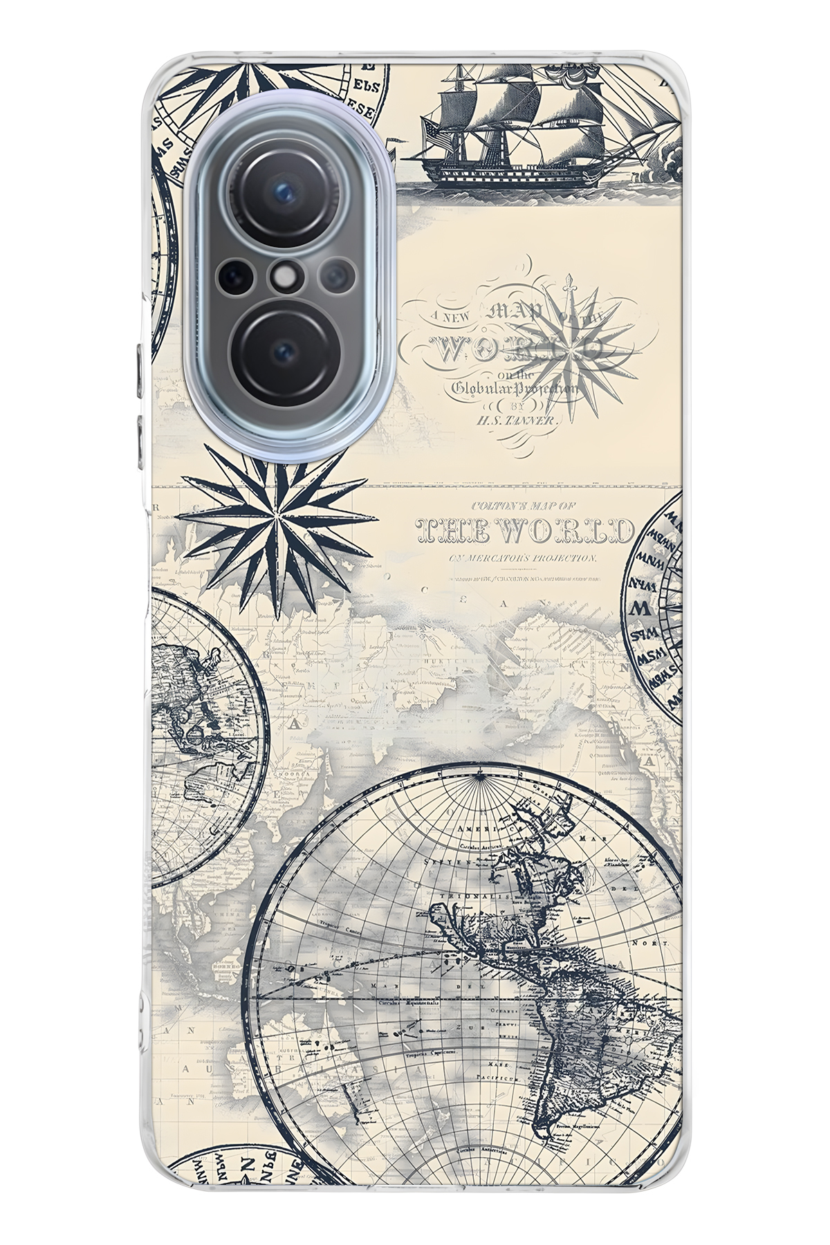 ميزات حافظة هاتف شفافة متوافقة مع هاتف هواوي نوفا 9 SE بنمط خريطة العالم والبوصلة من FLAMENKO