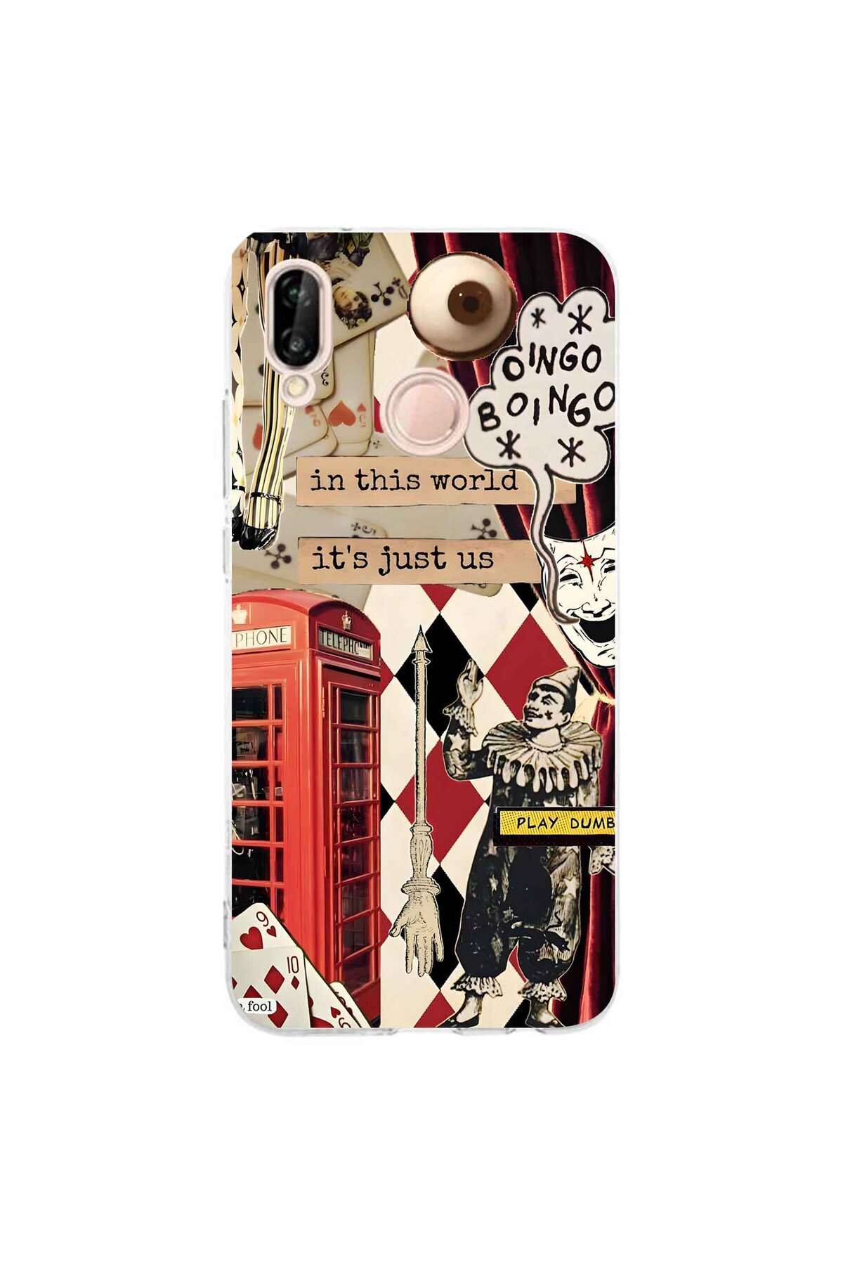 FLAMENKO حافظة هاتف شفافة بنمط كولاج مهرج متوافقة مع هاتف هواوي P20 لايت