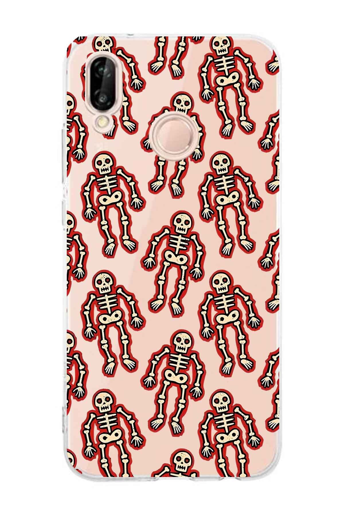 FLAMENKO حافظة هاتف شفافة بنمط هيكل عظمي متوافقة مع هاتف هواوي P20 لايت