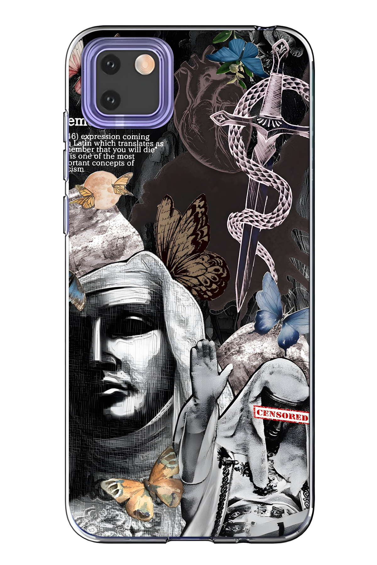 FLAMENKO حافظة هاتف شفافة متوافقة مع هاتف هواوي Y5P من طراز Gothic Butterfly منقوش