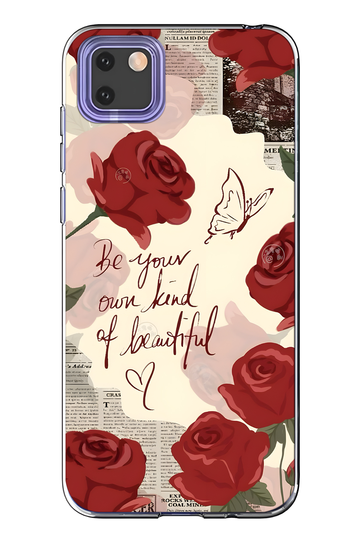 FLAMENKO حافظة هاتف شفافة متوافقة مع هاتف هواوي Y5P باللون الأحمر الوردي منقوش