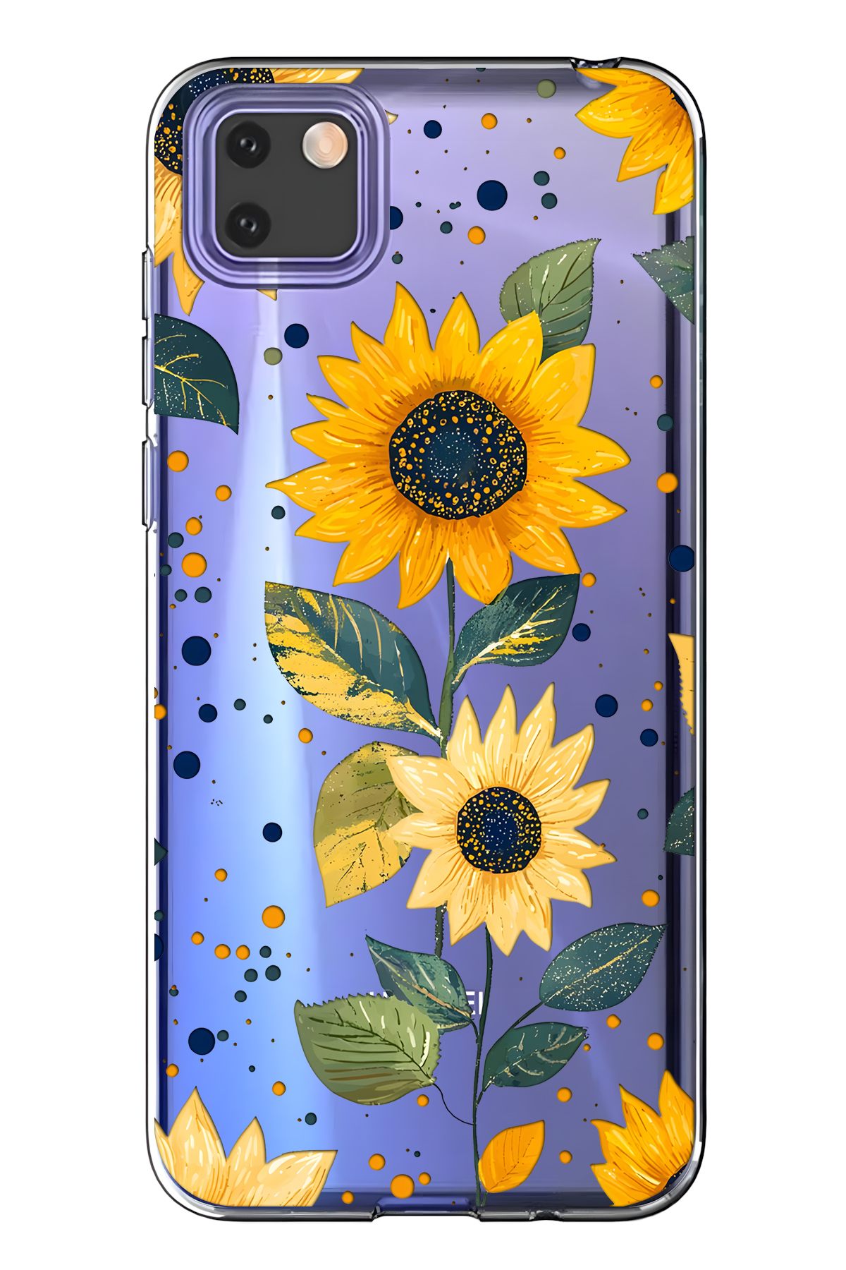 FLAMENKO حافظة هاتف شفافة متوافقة مع هاتف هواوي Y5P من نوع Ayçiçeği منقوش منقوش