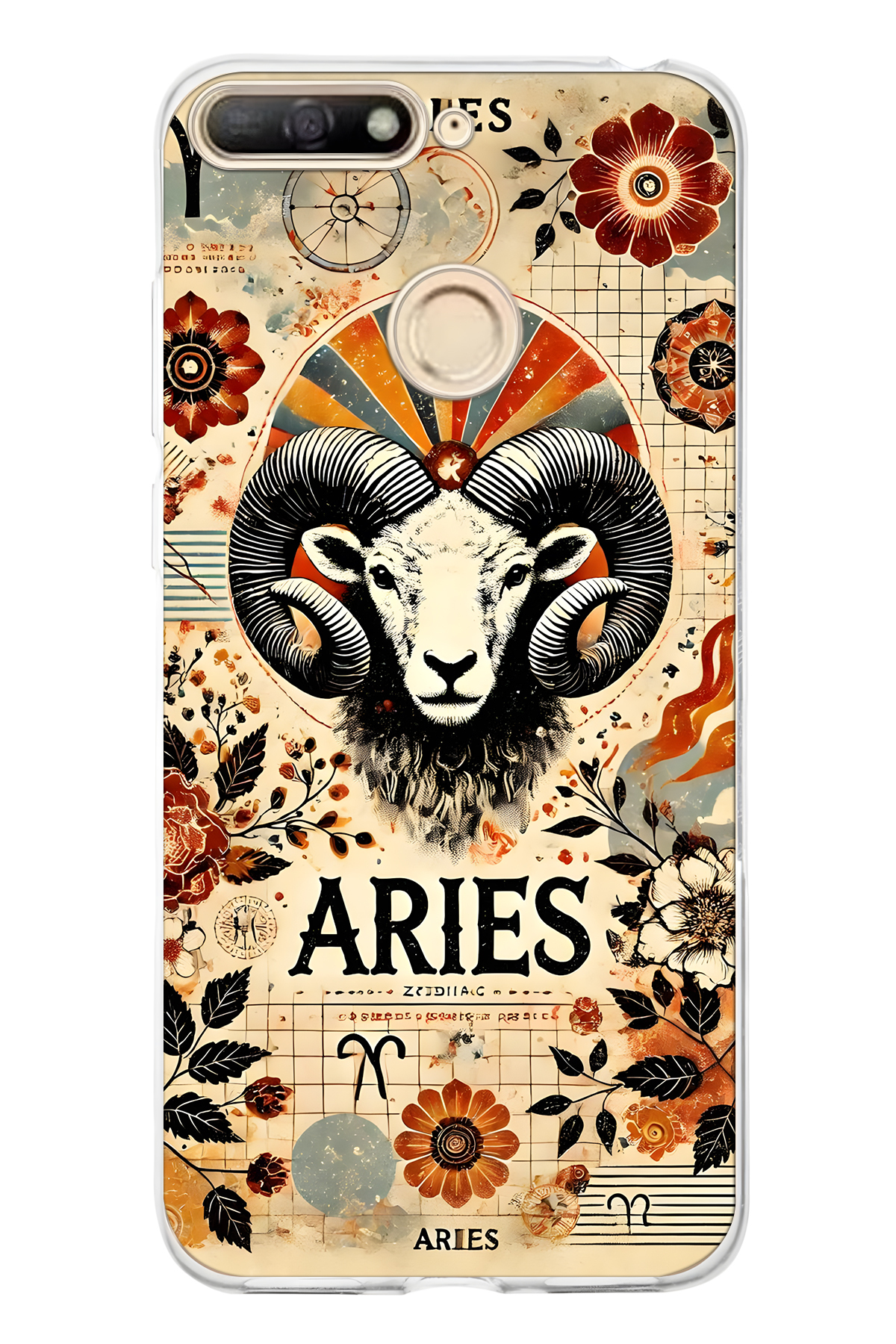 FLAMENKO حافظة هاتف شفافة بنمط برج الحمل متوافقة مع هاتف هواوي Y6 2018