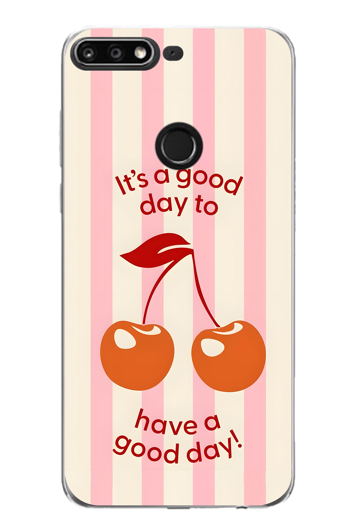 FLAMENKO حافظة هاتف شفافة متوافقة مع هواوي Y7 2018 بنمط الكرز