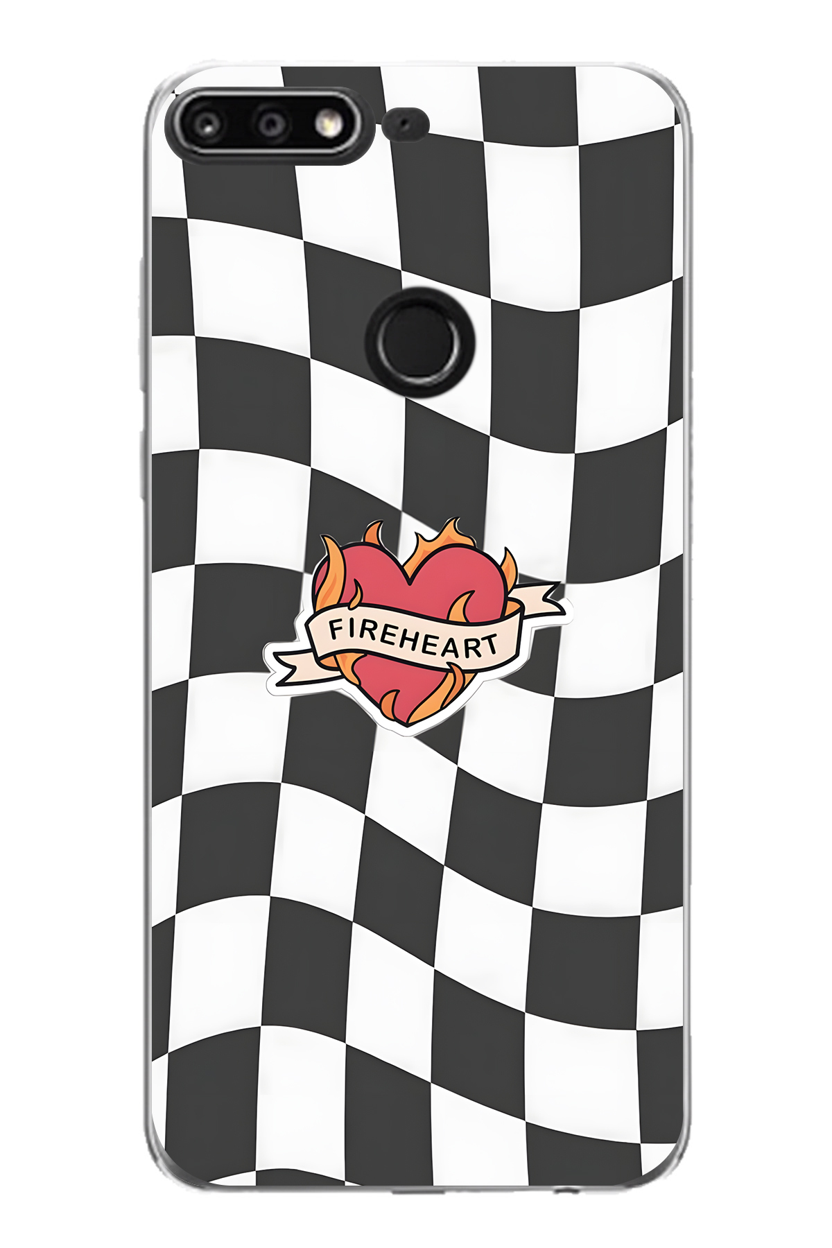 ميزات حافظة هاتف شفافة بنمط مربع من Fireheart متوافقة مع هاتف هواوي Y7 2018 من FLAMENKO