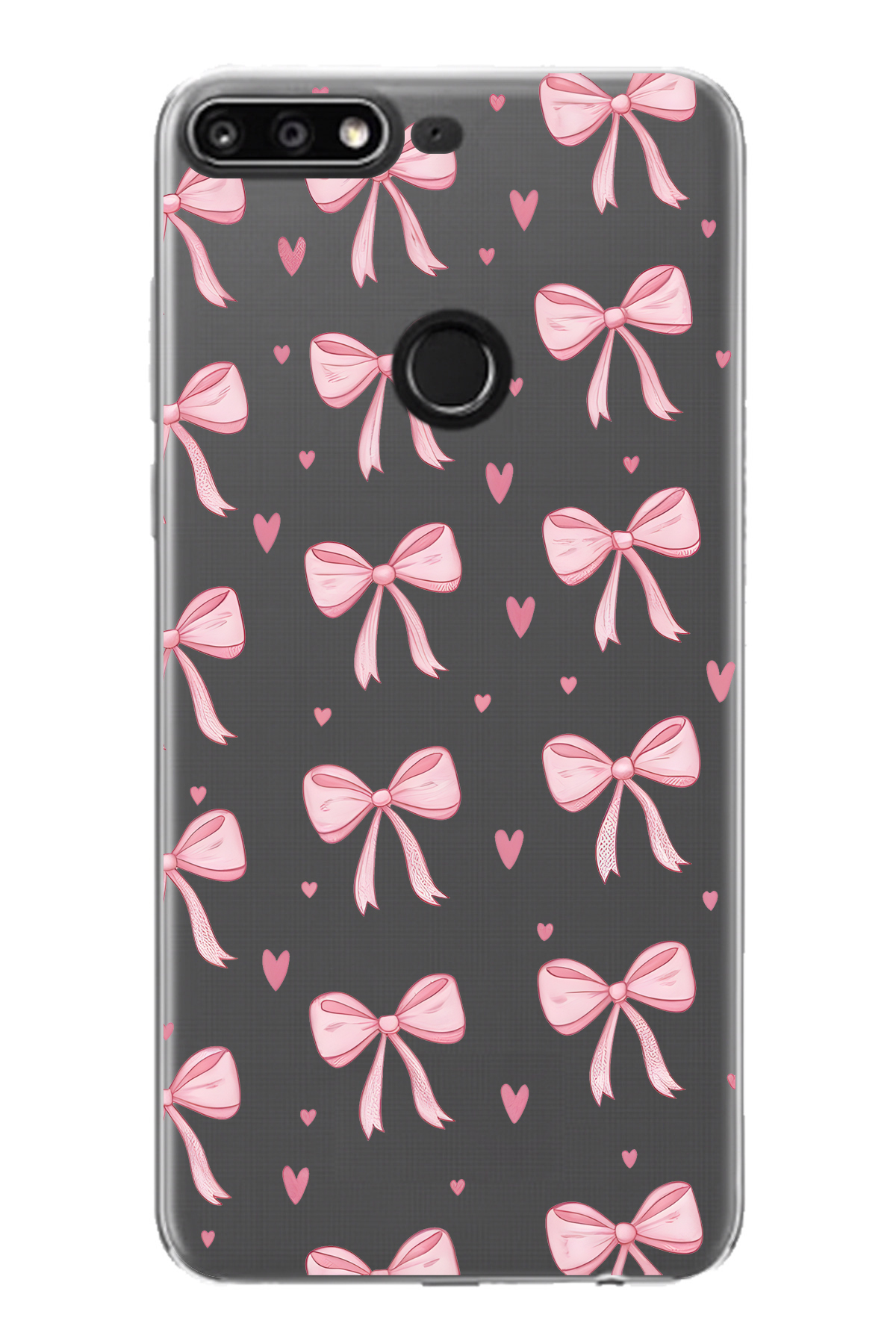 FLAMENKO حافظة هاتف شفافة بنمط فيونك وردي متوافقة مع هاتف هواوي Y7 2018