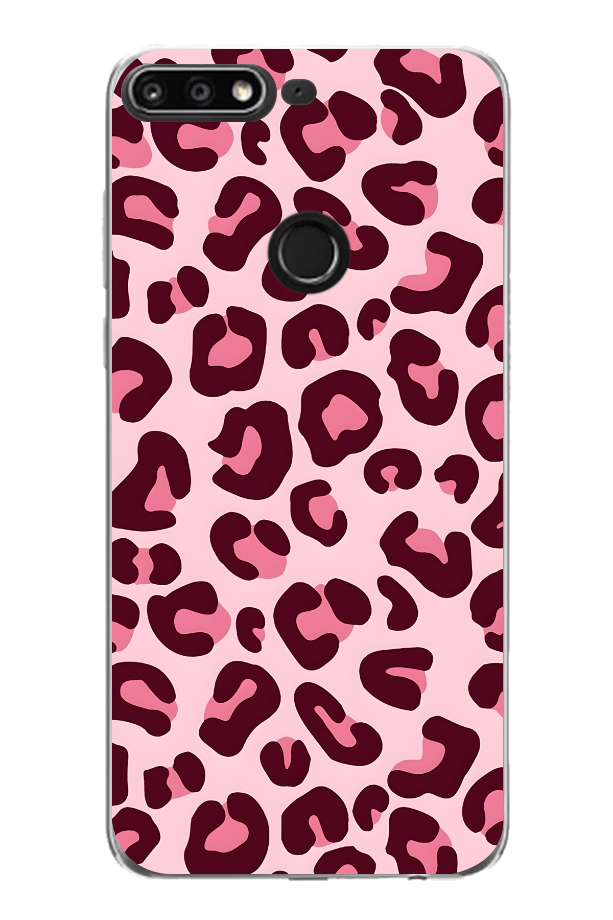 FLAMENKO حافظة هاتف شفافة بنمط الفهد الوردي متوافقة مع هاتف هواوي Y7 2018