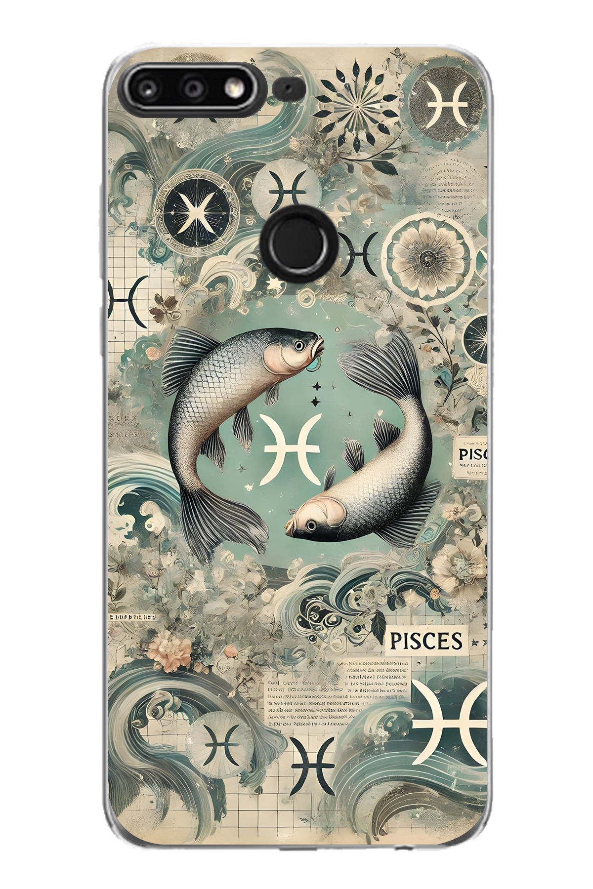 ميزات حافظة هاتف شفافة متوافقة مع هاتف هواوي Y7 2018 بنمط علامة برج الحوت من FLAMENKO
