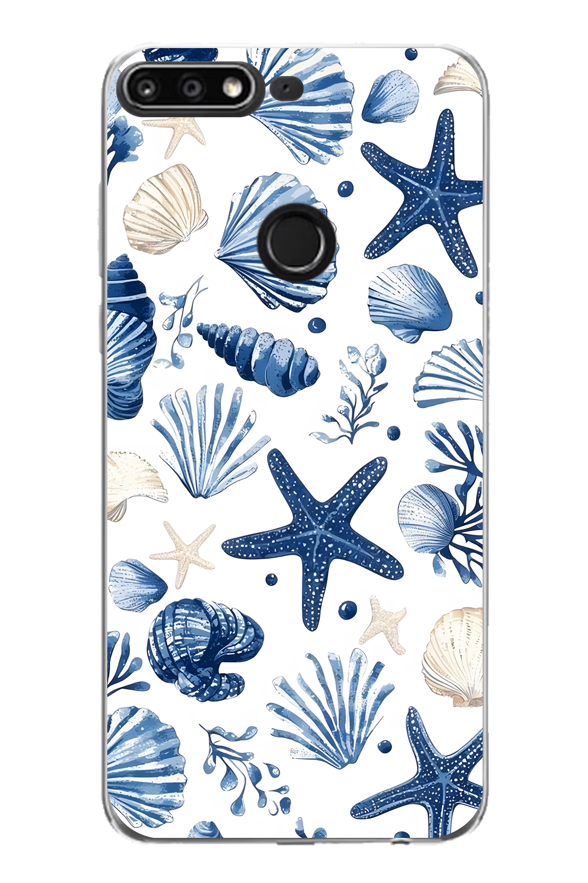 ميزات حافظة هاتف شفافة متوافقة مع هاتف هواوي Y7 2018 بنمط نجم البحر والأصداف من FLAMENKO