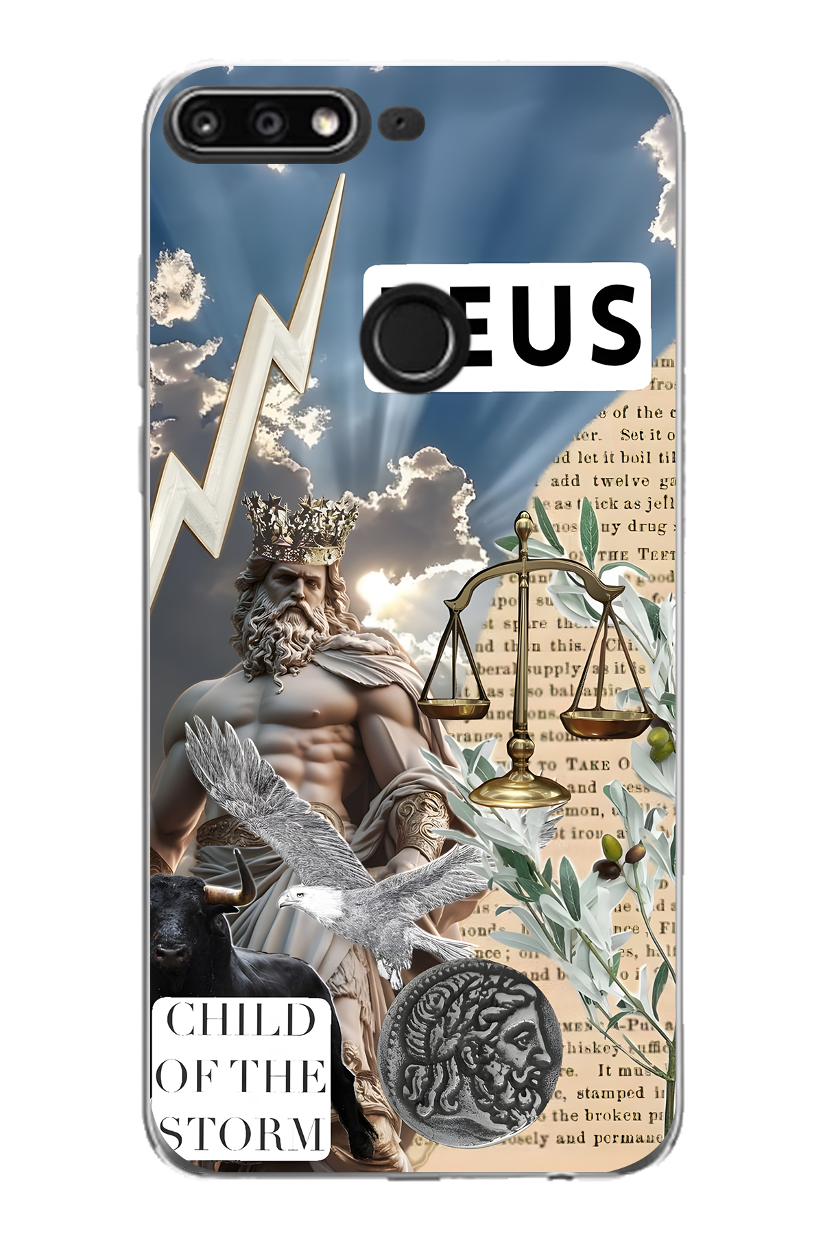 ميزات حافظة هاتف شفافة متوافقة مع هاتف هواوي Y7 2018 بنمط زيوس من FLAMENKO