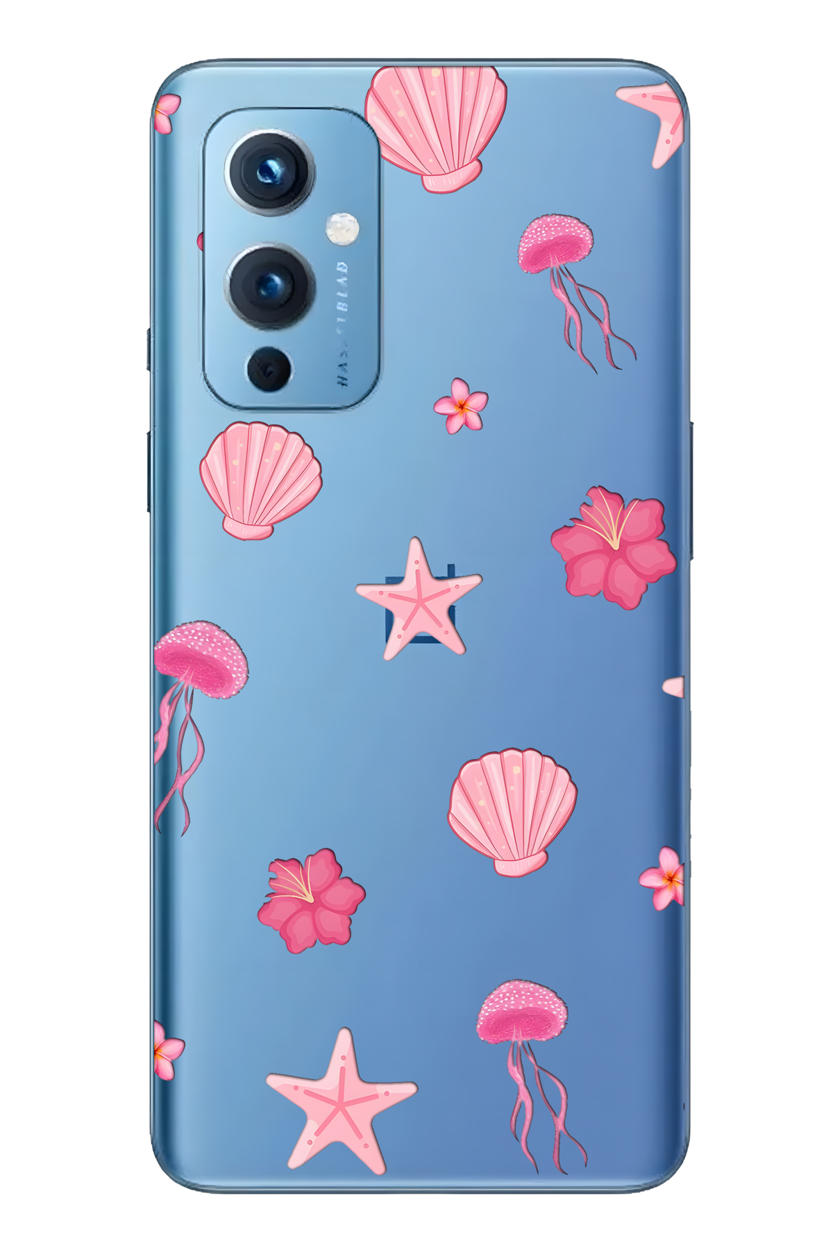 ميزات حافظة هاتف شفافة متوافقة مع One Plus 9 باللون الوردي Sea Theme منقوش من FLAMENKO