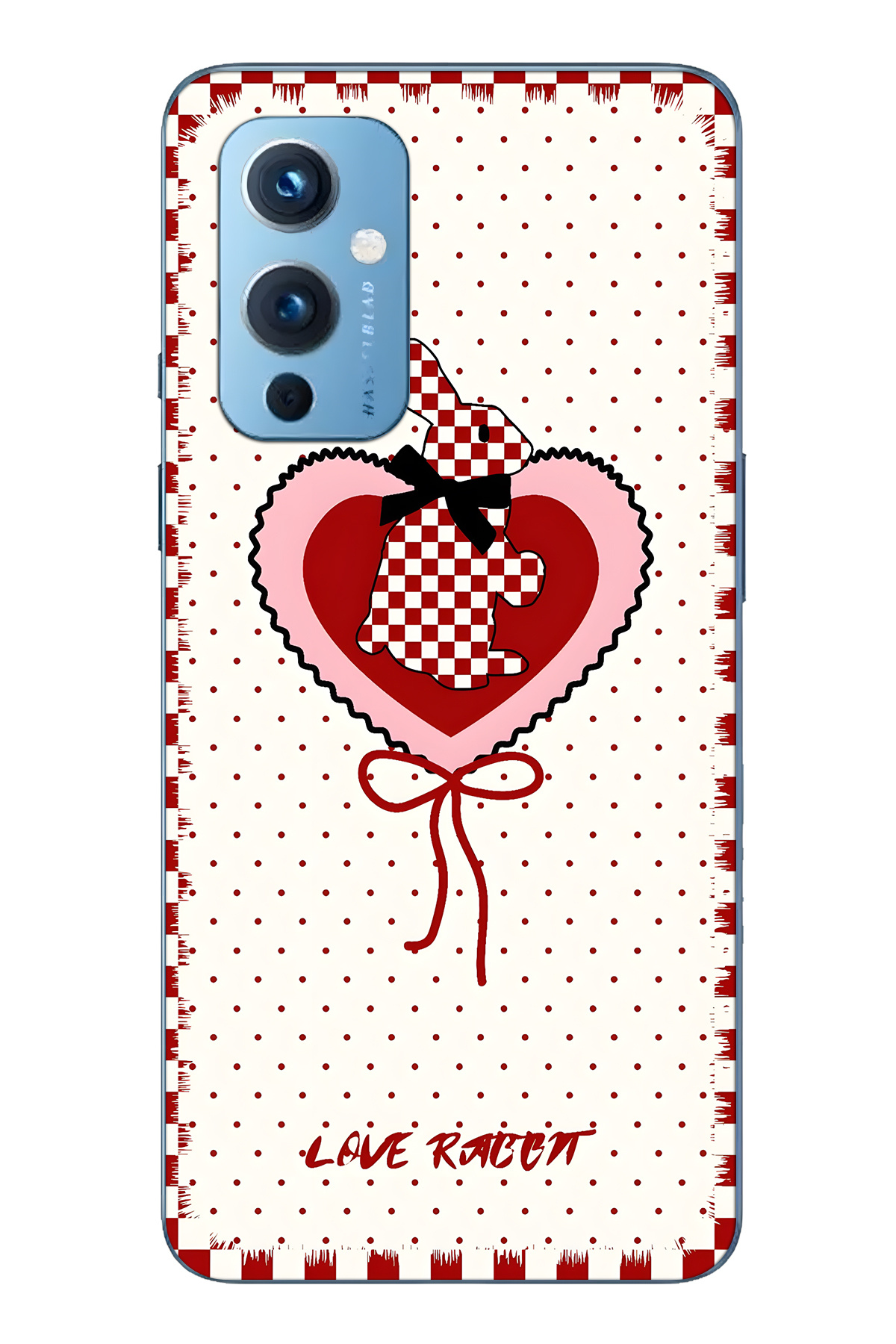 FLAMENKO حافظة هاتف شفافة متوافقة مع One Plus 9 باللون الأحمر بنقش مربعات Rabbit منقوش