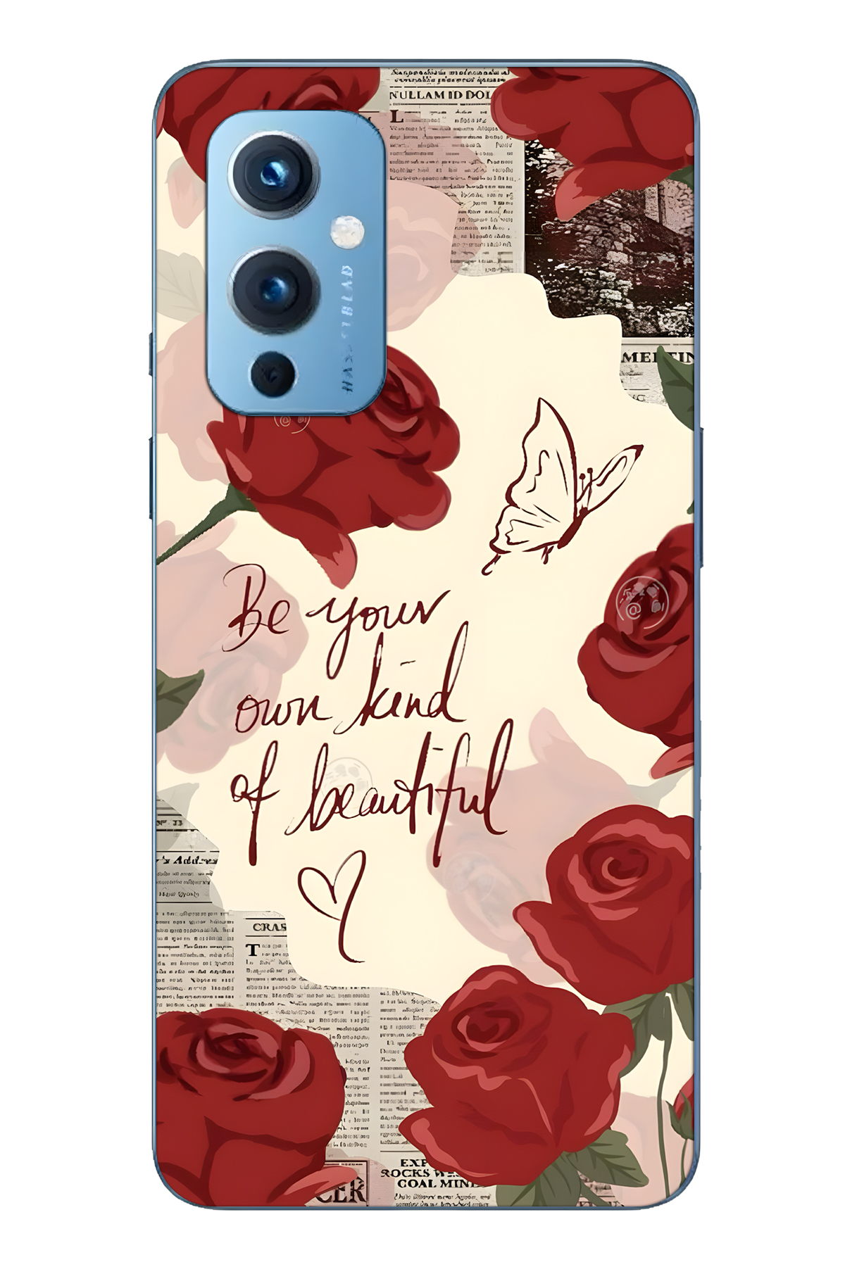 FLAMENKO حافظة هاتف شفافة متوافقة مع ون بلس 9 باللون الأحمر الوردي منقوش