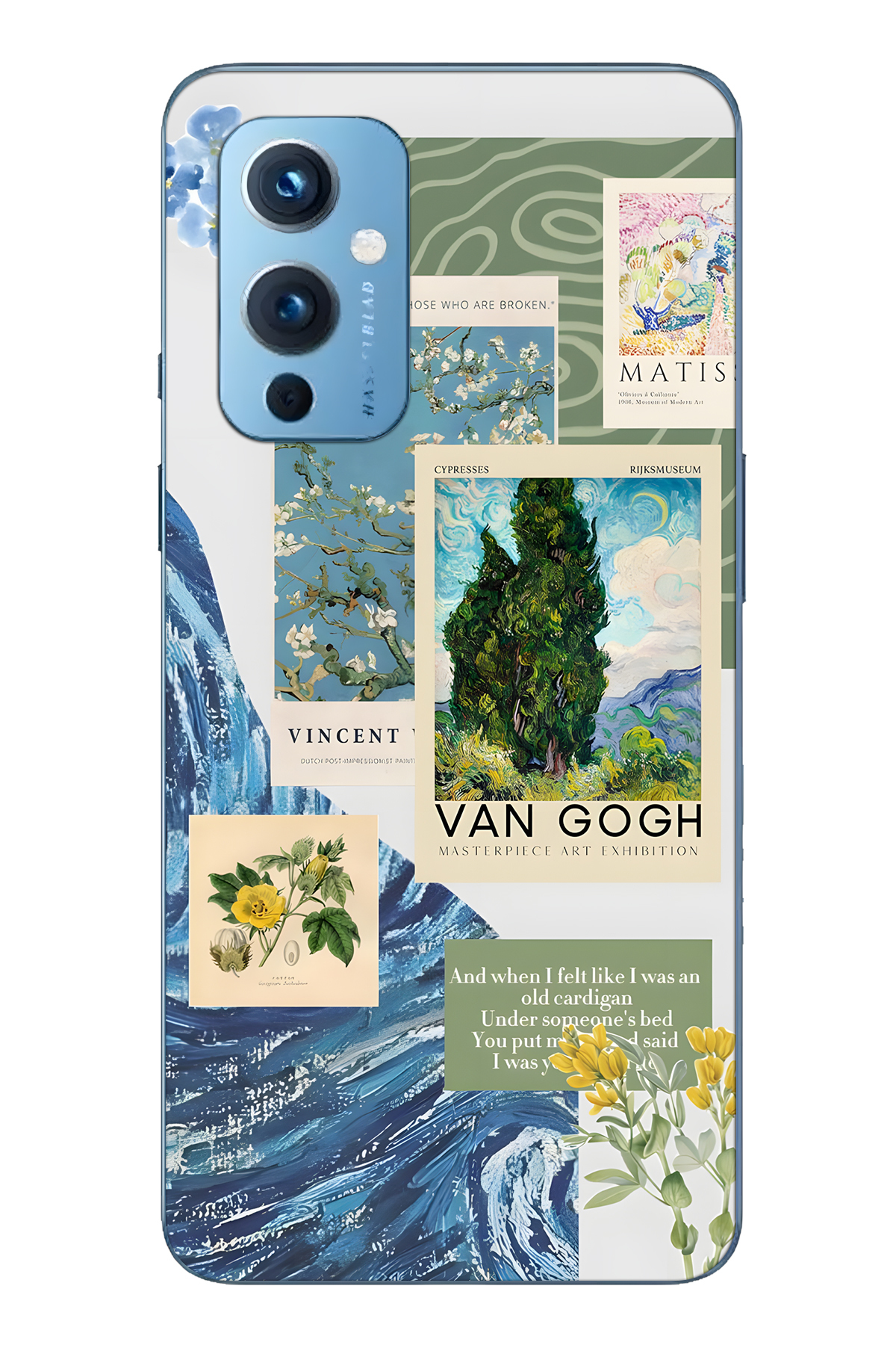 FLAMENKO حافظة هاتف وان بلس 9 متوافقة مع فان جوخ منقوش شفافة