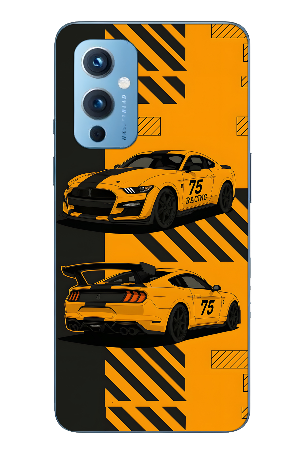 ميزات حافظة هاتف شفافة متوافقة مع One Plus 9 باللون الأصفر Racing Car منقوش من FLAMENKO