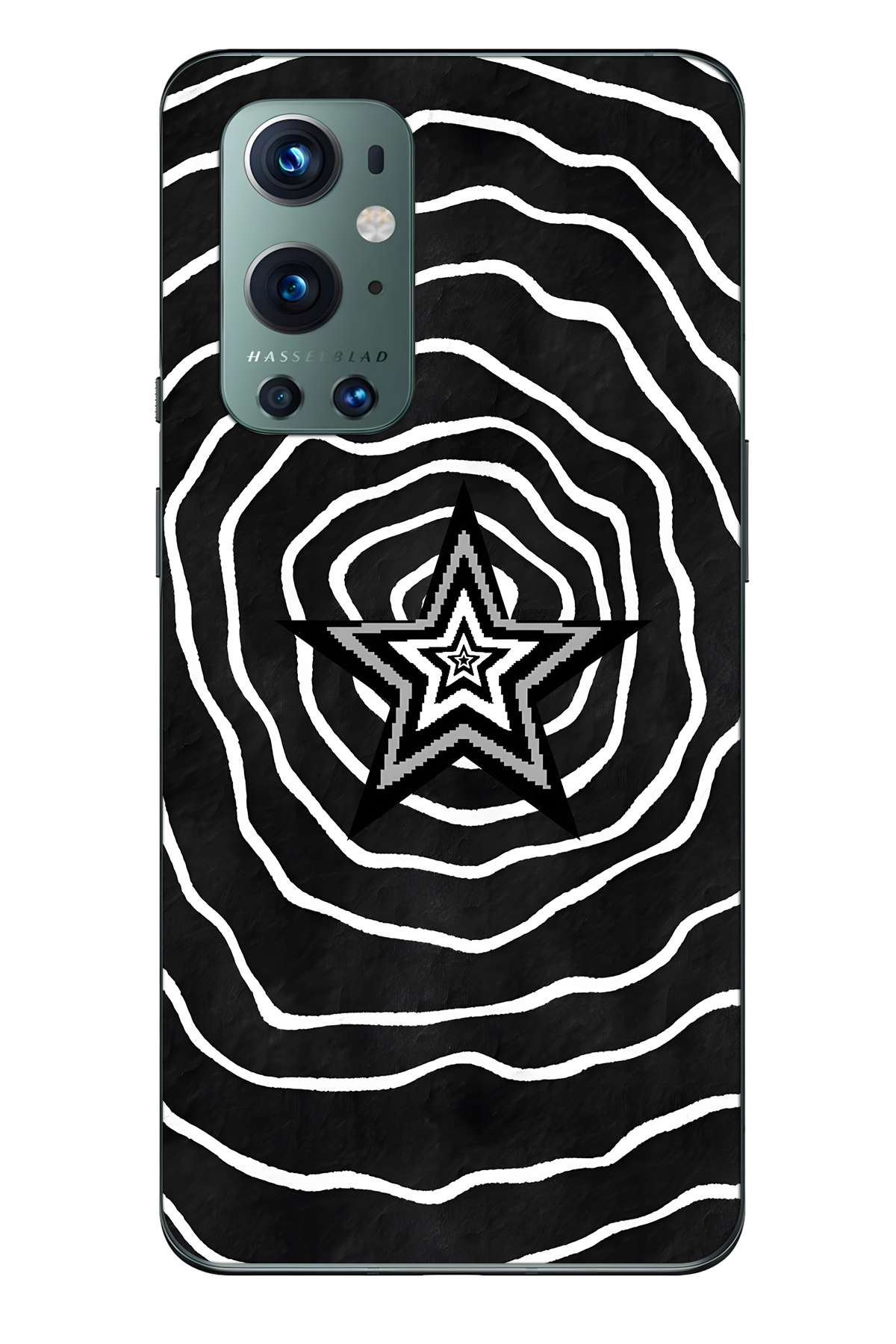 FLAMENKO حافظة هاتف شفافة متوافقة مع One Plus 9 Pro باللونين الأسود والأبيض Yıldız منقوش