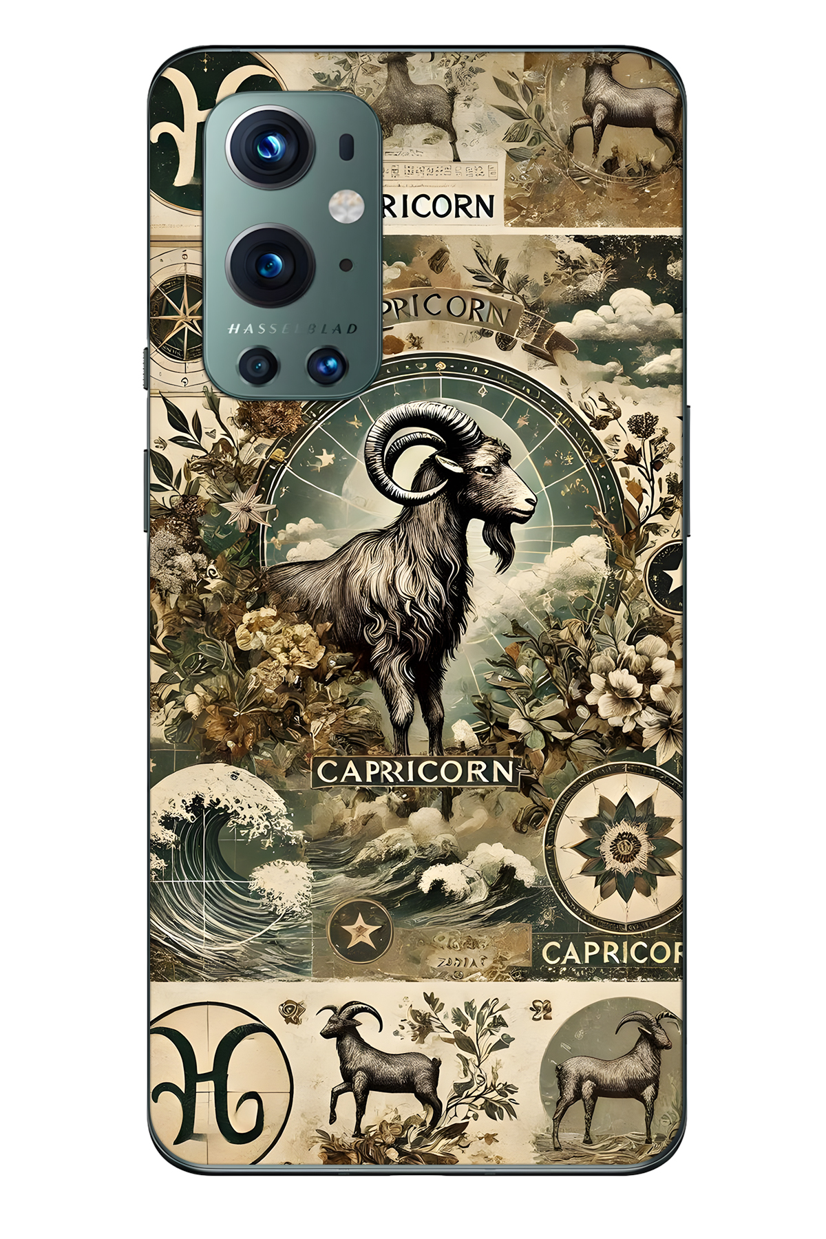 FLAMENKO حافظة هاتف شفافة متوافقة مع One Plus 9 Pro من نوع Capricorn منقوش