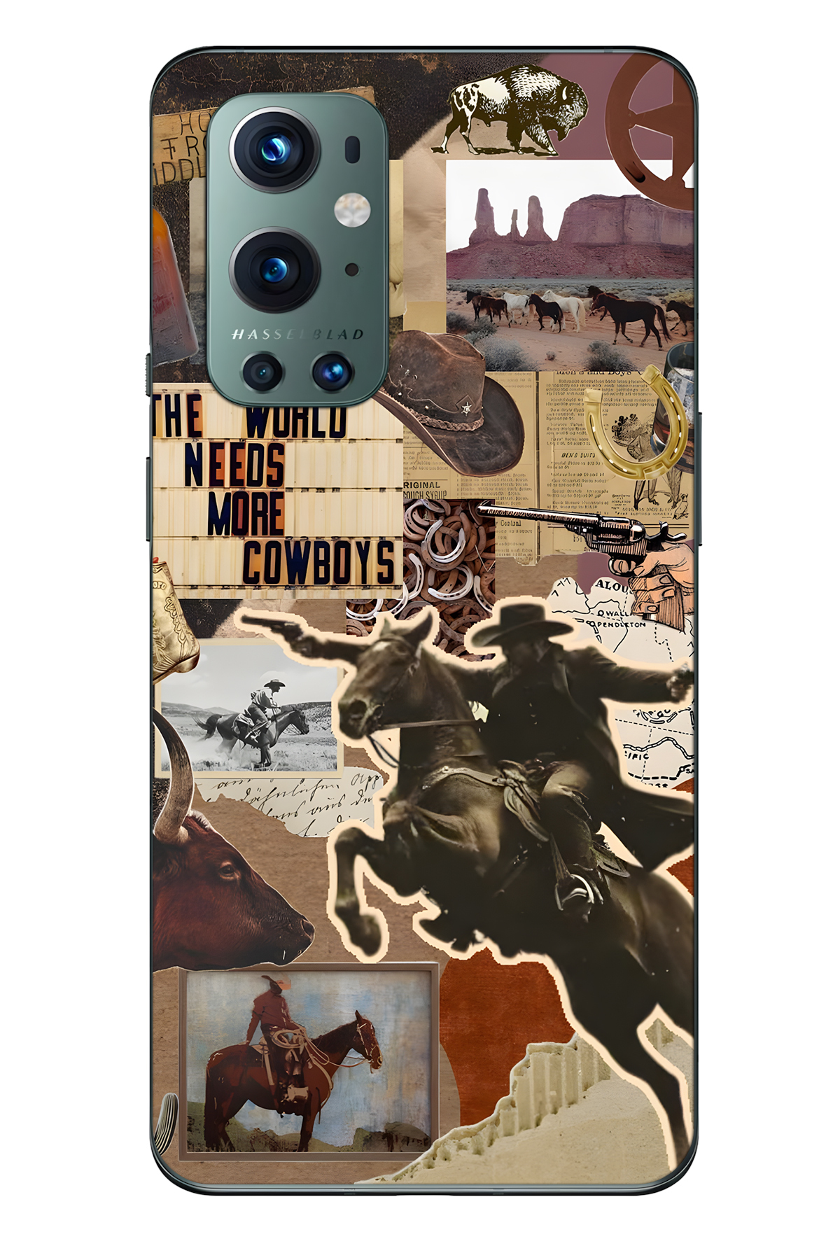 ميزات حافظة هاتف شفافة متوافقة مع One Plus 9 Pro من نوع Cowboy Western Collage منقوش من FLAMENKO