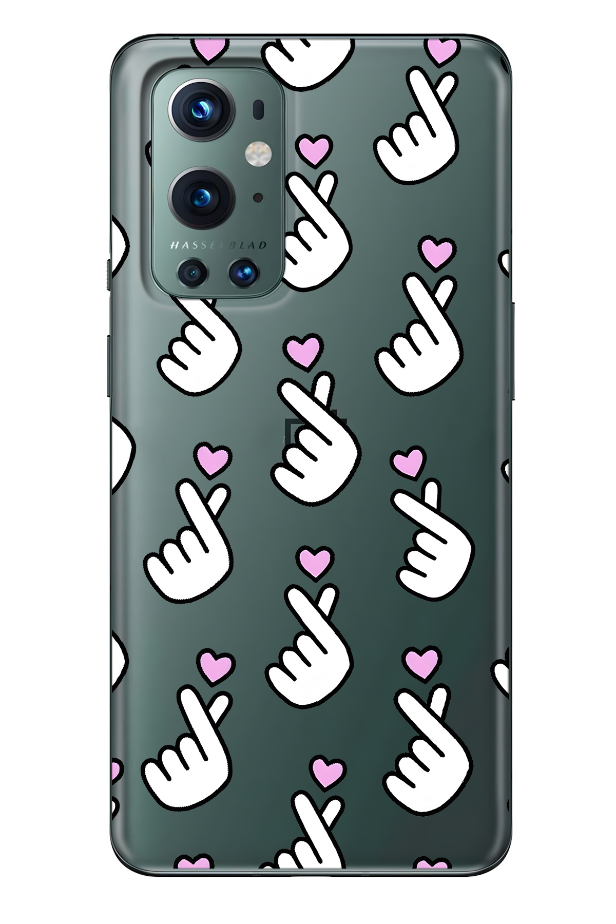 FLAMENKO حافظة هاتف شفافة متوافقة مع هاتف ون بلس 9 برو من نوع Parmak Kalp منقوش
