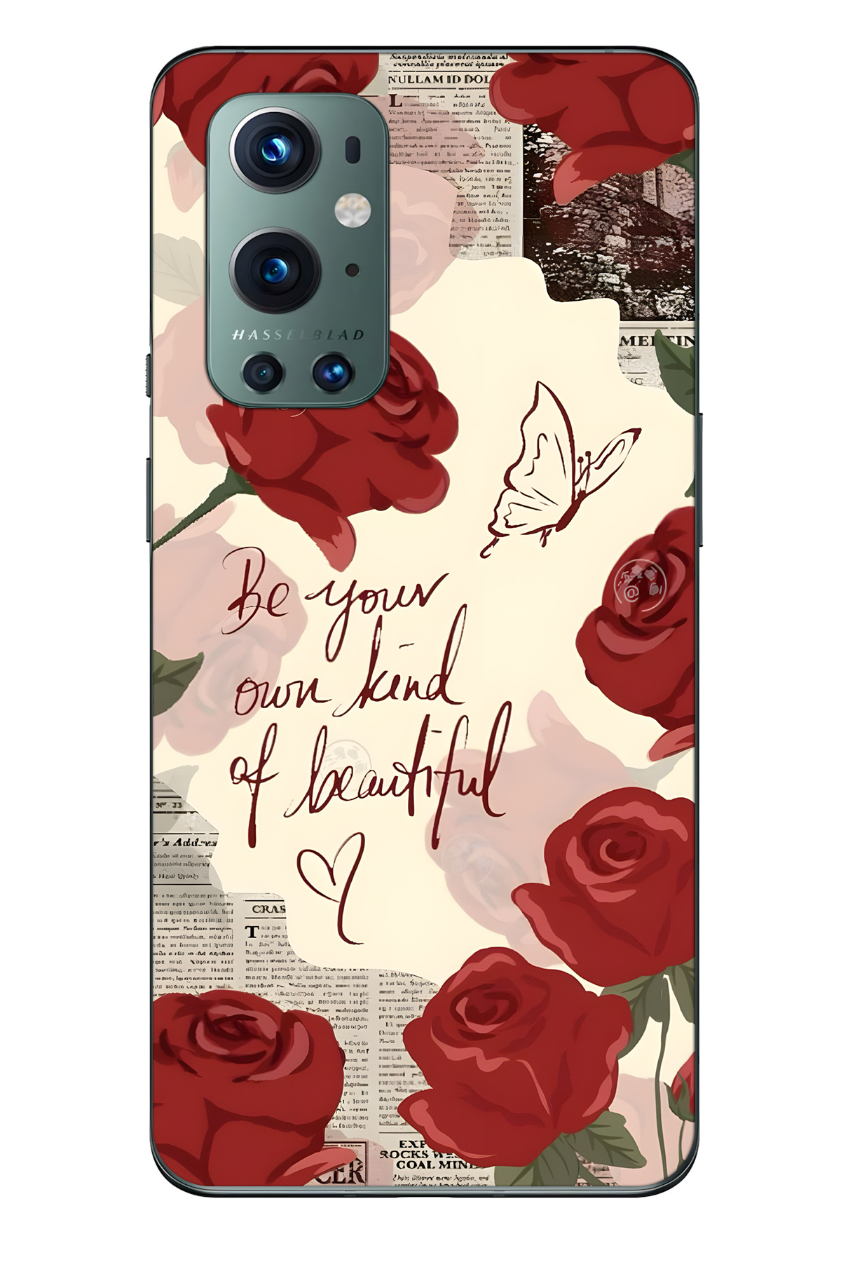 FLAMENKO حافظة هاتف شفافة متوافقة مع One Plus 9 Pro باللون الأحمر الوردي منقوش