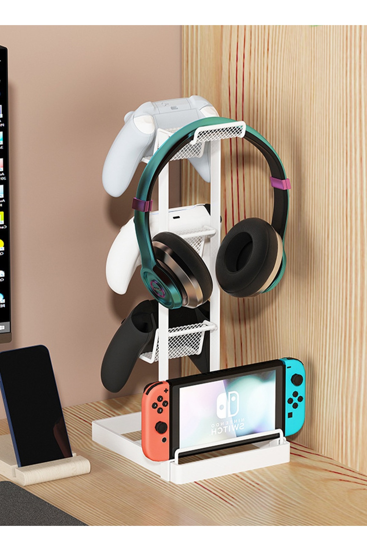 FlashHawk حامل عرض لوحدات التحكم بثلاث طبقات باللون الأبيض