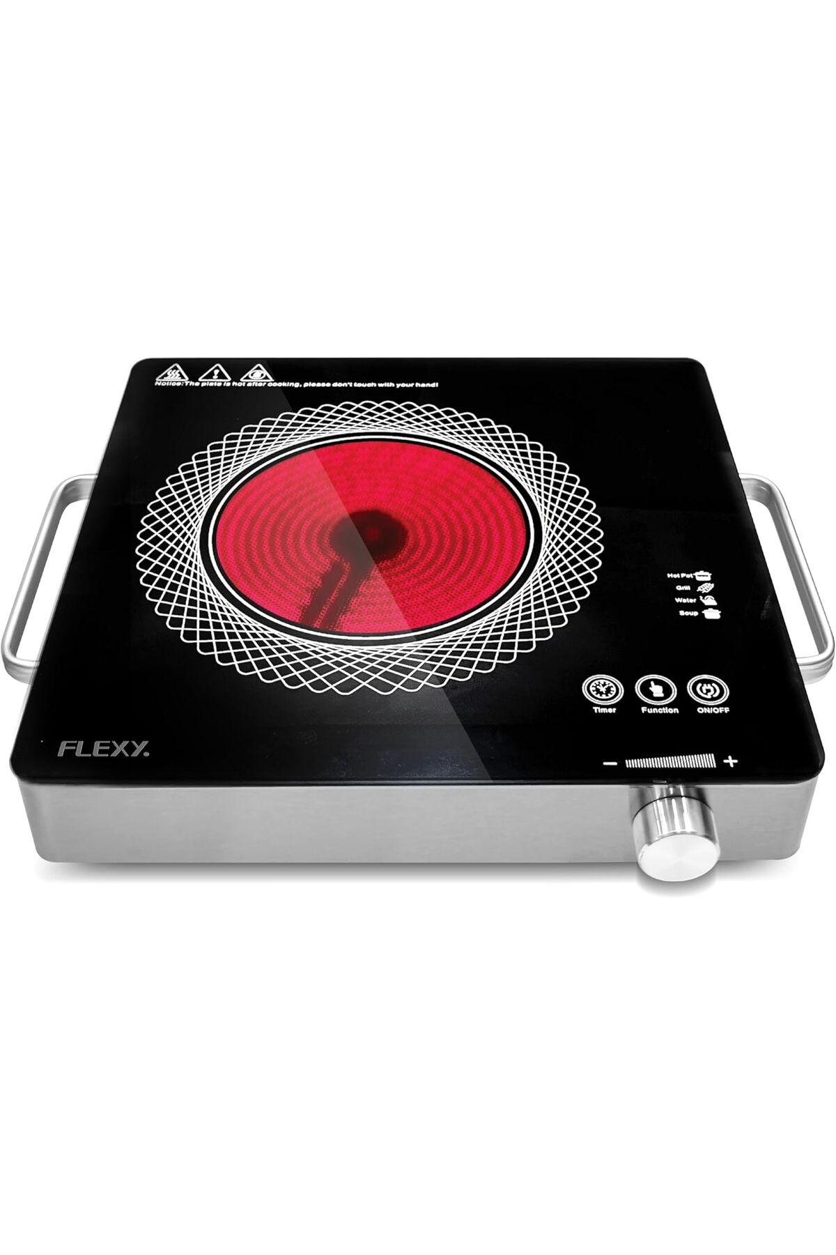 flexy طباخ الأشعة تحت الحمراء بقوة 2000 واط مع عنصر تسخين سيراميك، وشاشة لمس رقمية للتحكم، ومؤقت قابل للتعديل