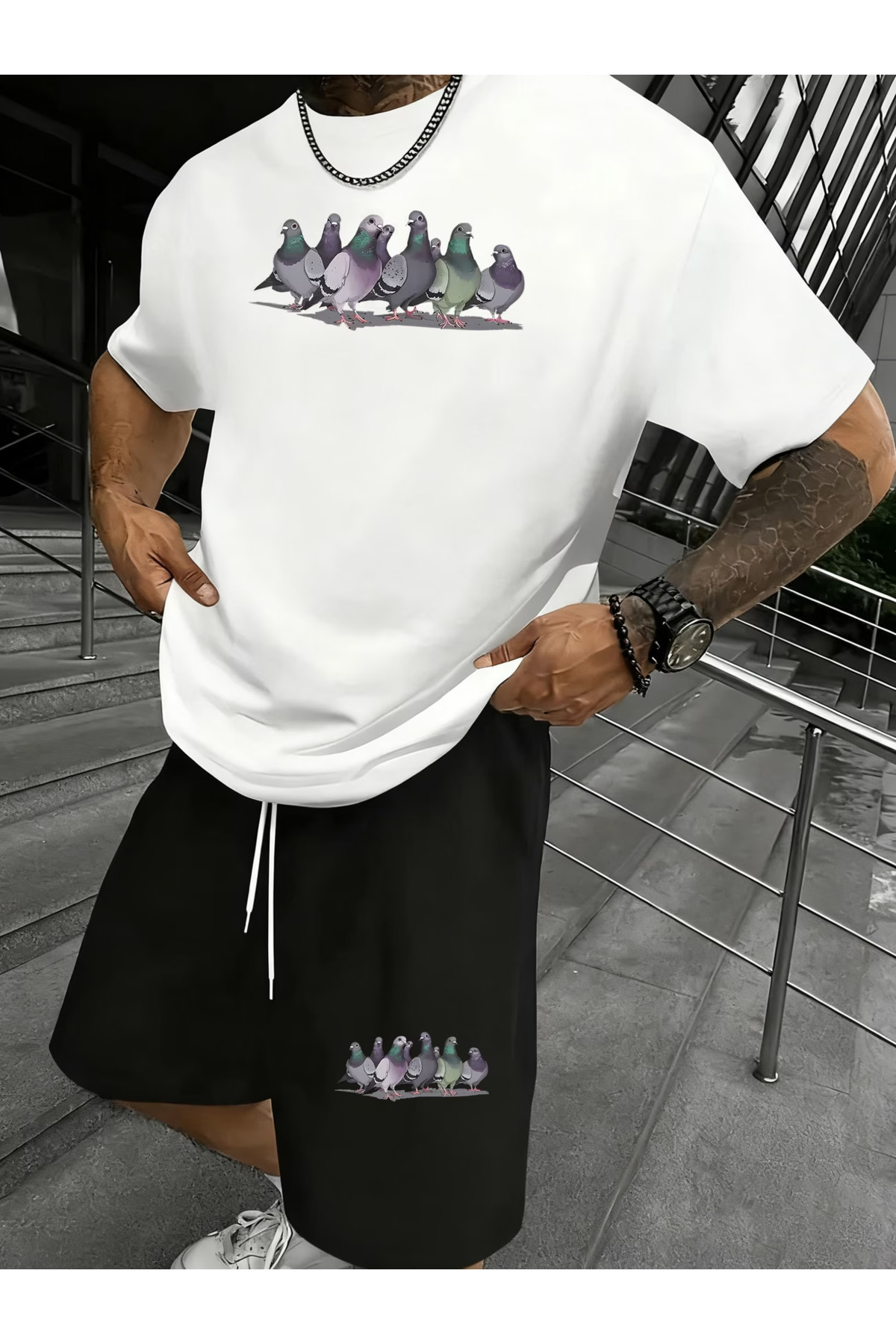 ميزات طقم شورت كبير الحجم من KÜŞ مطبوع من Flow touch