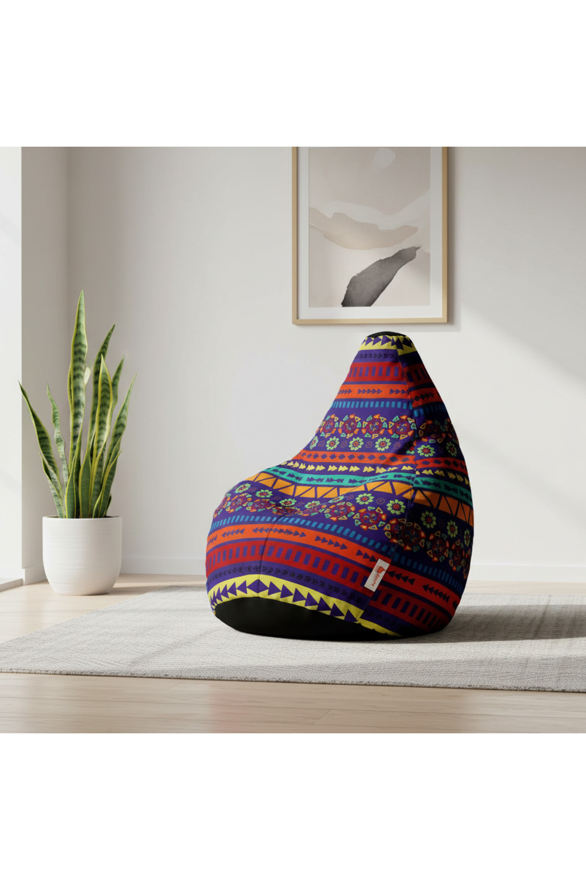 fluffy بين باج بنقوش هندسية ملونة – لمسة ديكور مبهجة