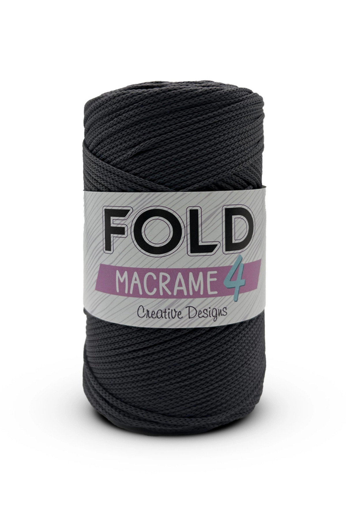 FOLD Yarn Macrame رقم: 4 - حبل بوليستر رمادي داكن، 2 مم - 200 جرام - 230 متر