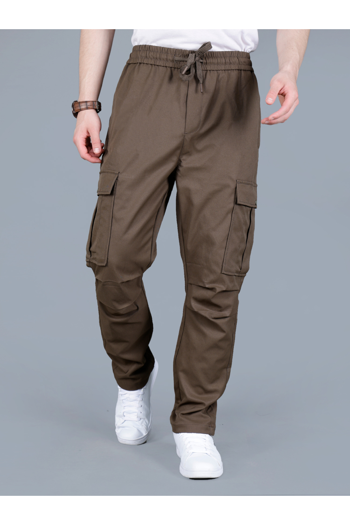 Fort Collins By Styli بنطلون كارغو رجالي سادة برباط
