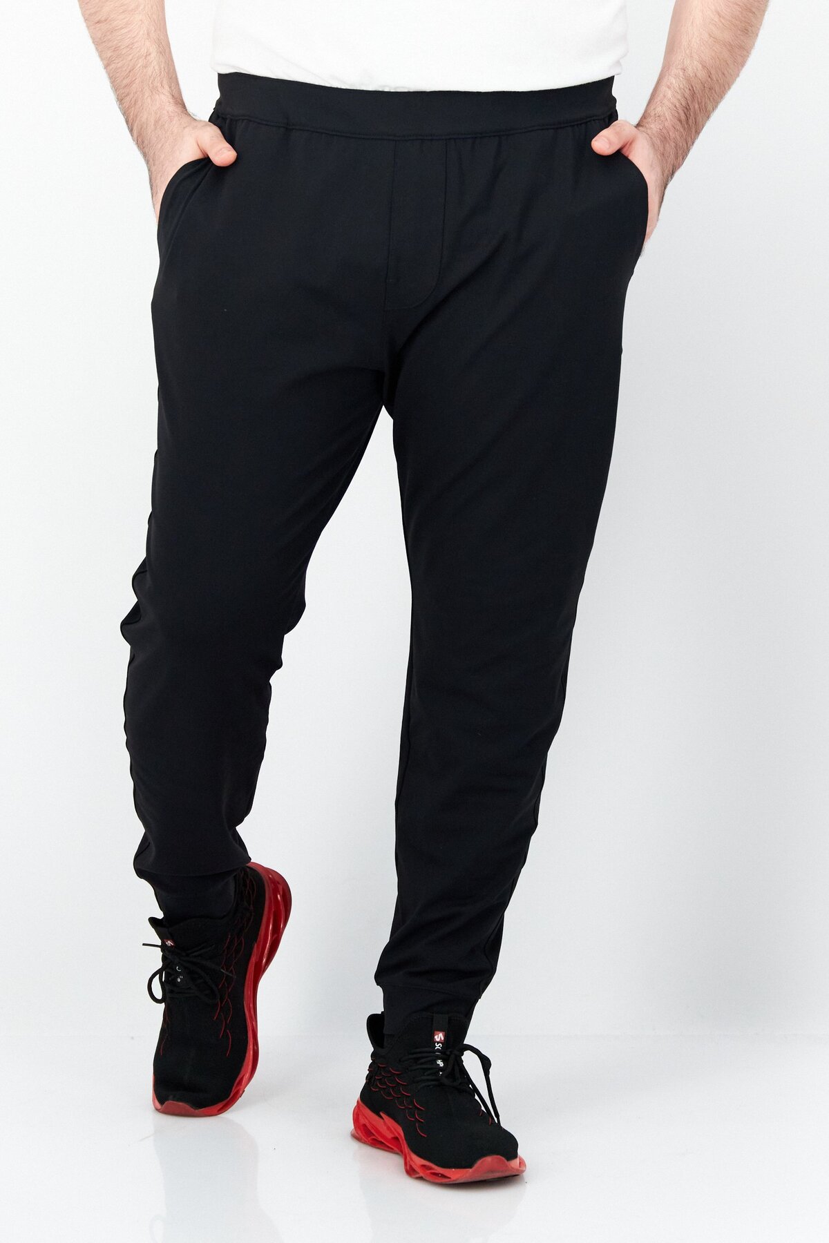 ميزات بنطال رياضي مستقيم للرجال، أسود من Fourlaps